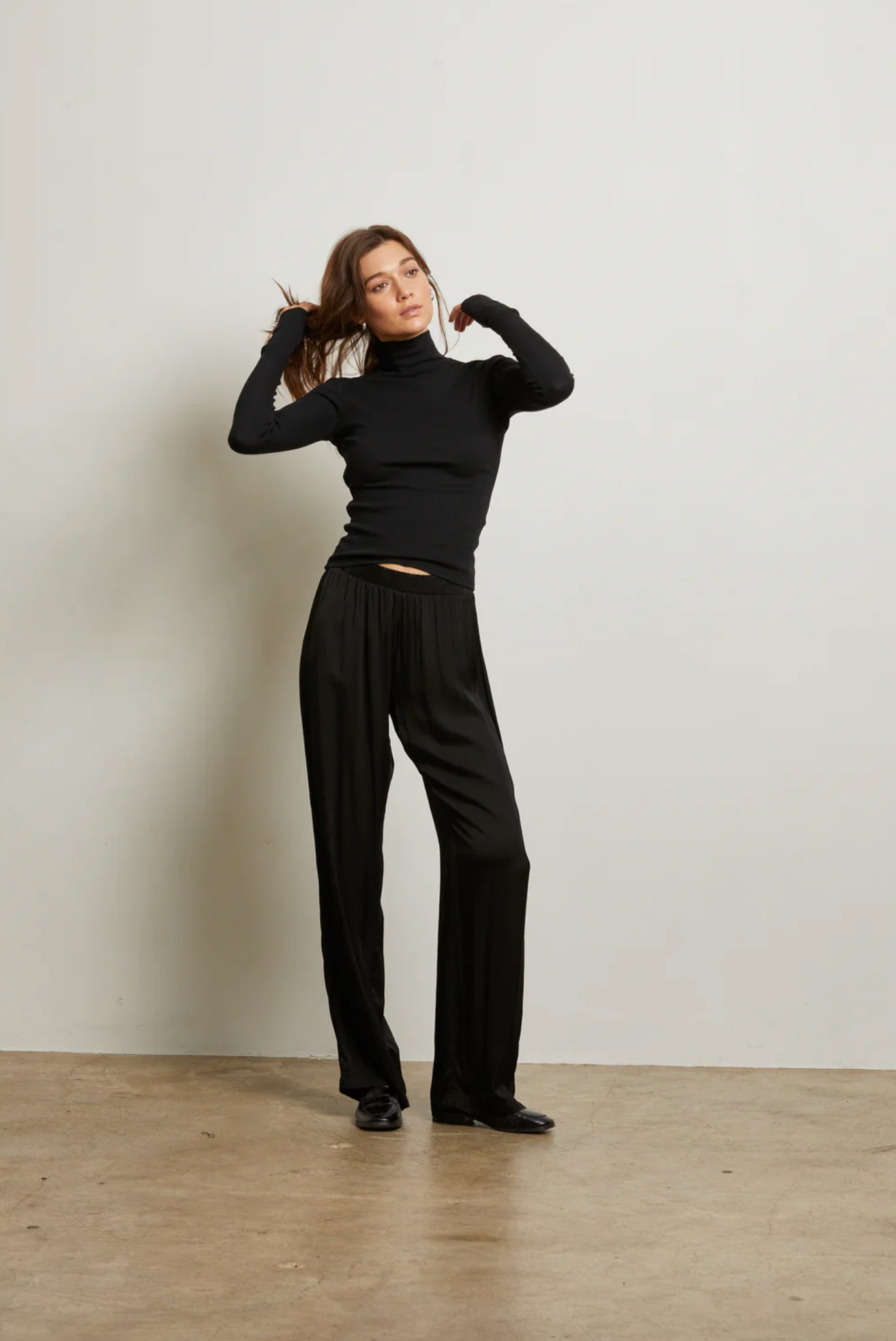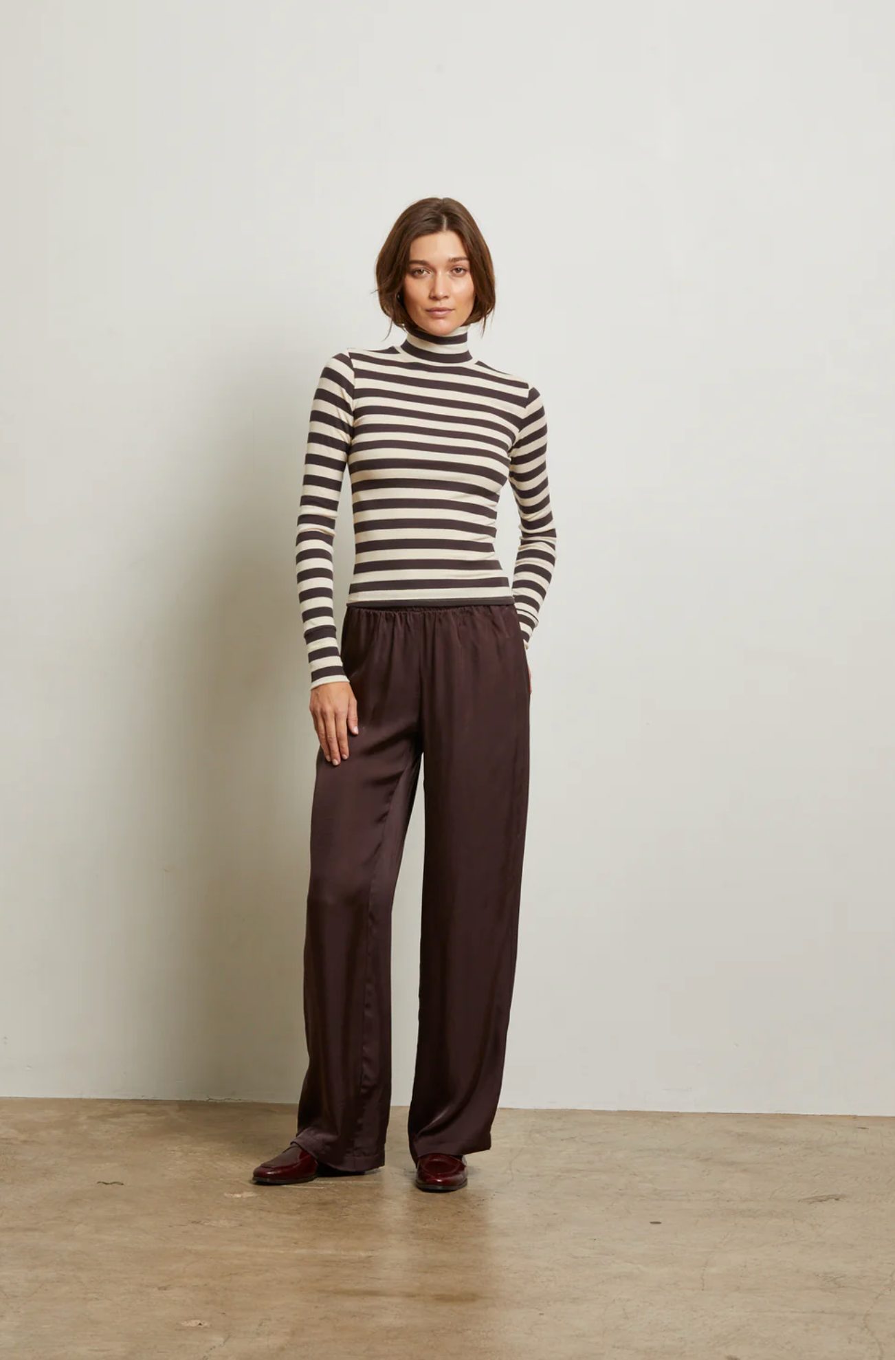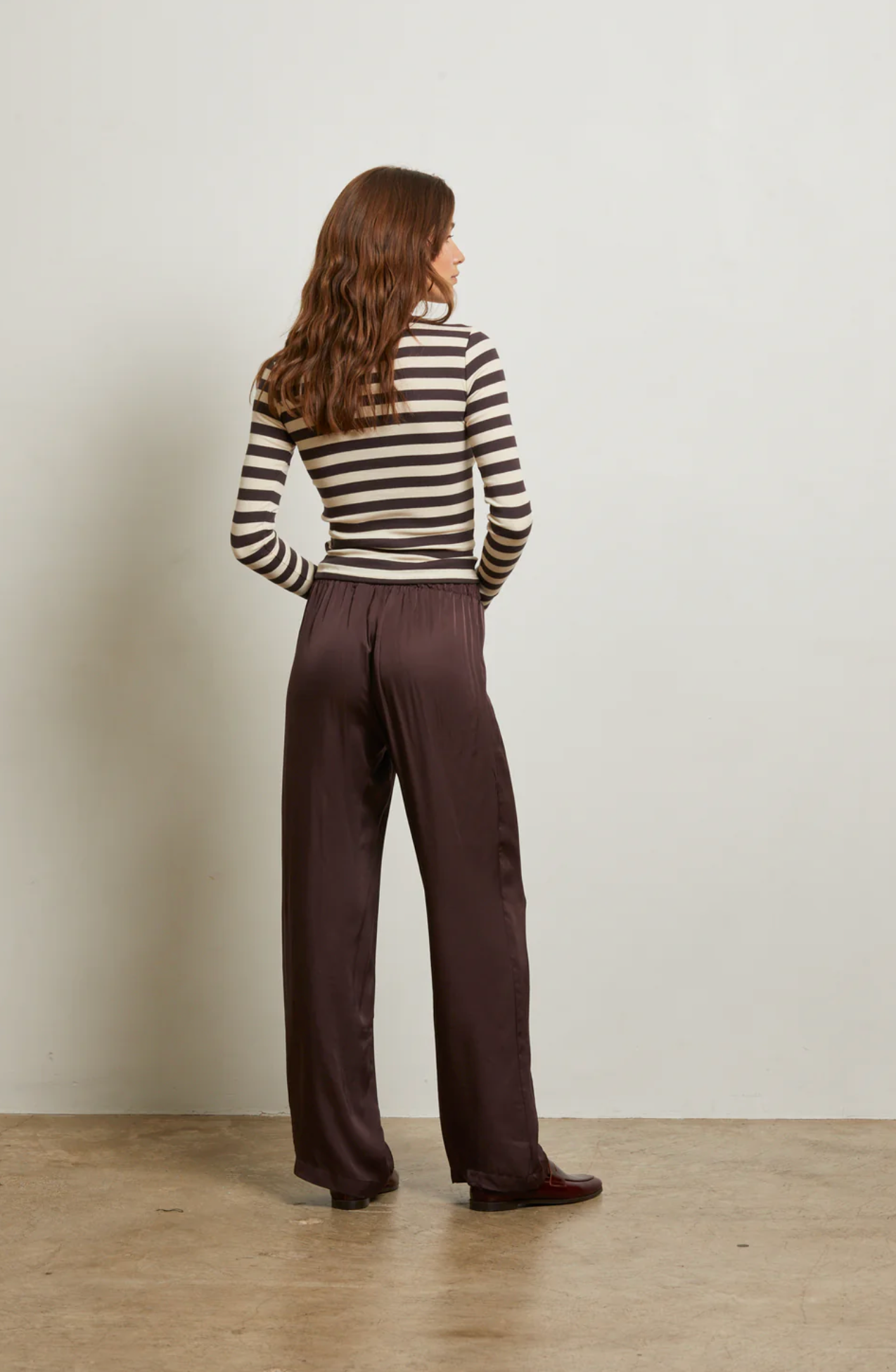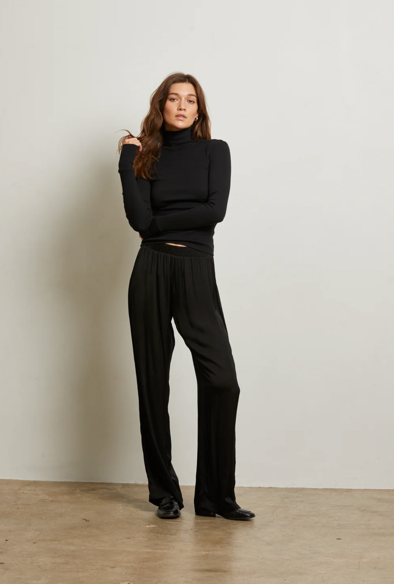 dressed up or down, the camille pull on satin pant will be your holiday hero. we are wearing ours with everything from chunky knits, crisp button downs and back to the delphine tee.