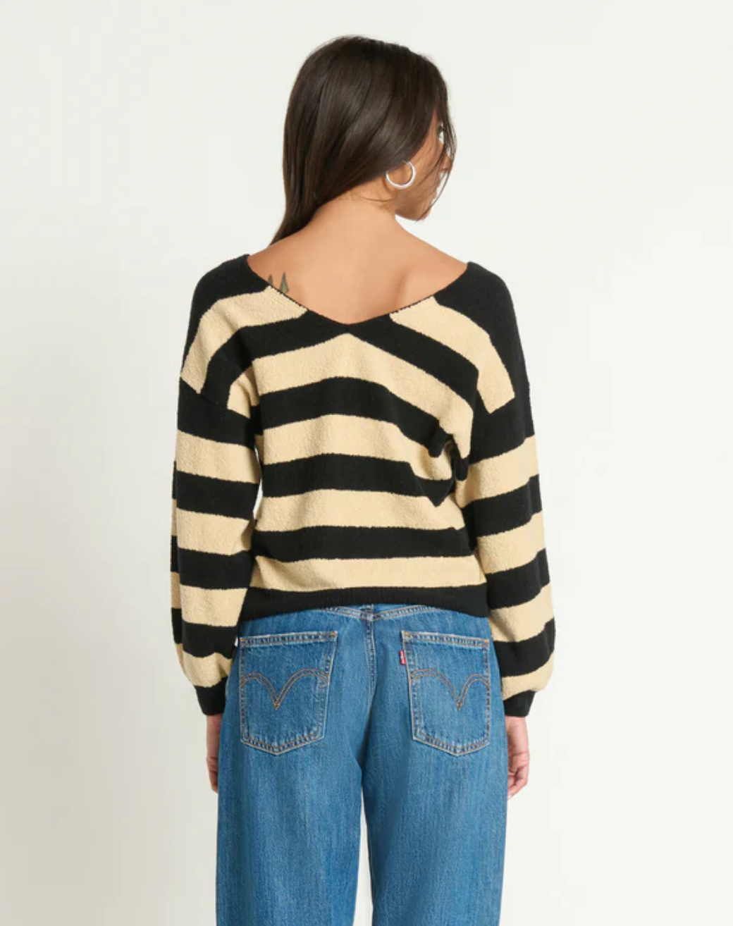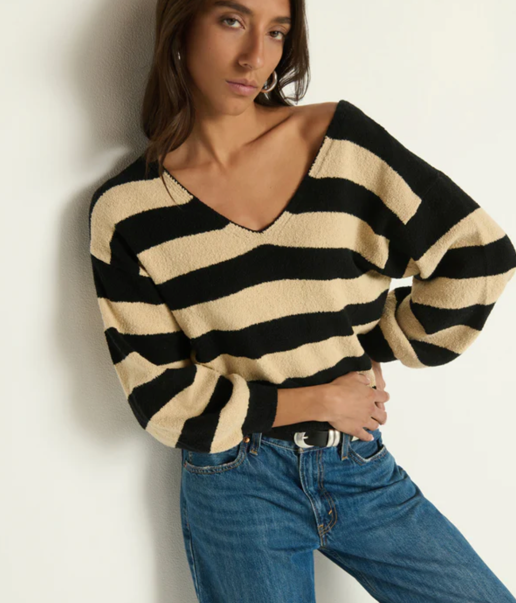 Knit with our Pima Cotton Velour, this slightly cropped, boxy, drop shoulder pullover is both plush and breathable—meaning you'll never want to take it off. This one comes in Butterscotch Stripe.