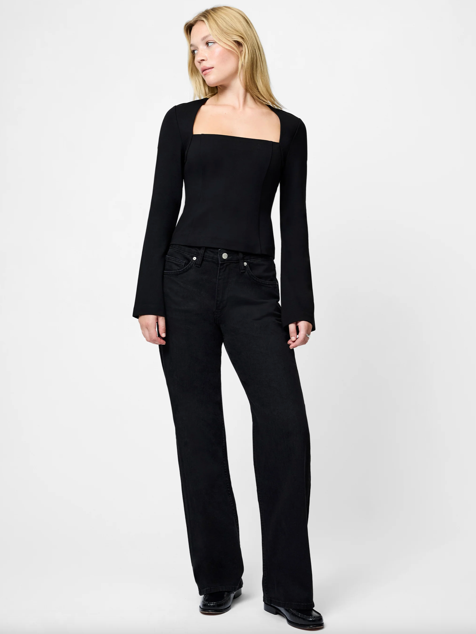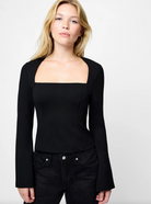 A modern layer that does all the work for you. The Cleo Ponte Long Sleeve Fitted Top is cut from smooth, structured ponte with a flattering square neckline and sleek long sleeves. Its close fit and clean lines make it endlessly versatile—sharp enough for tailored pairings, easy enough for relaxed moments.