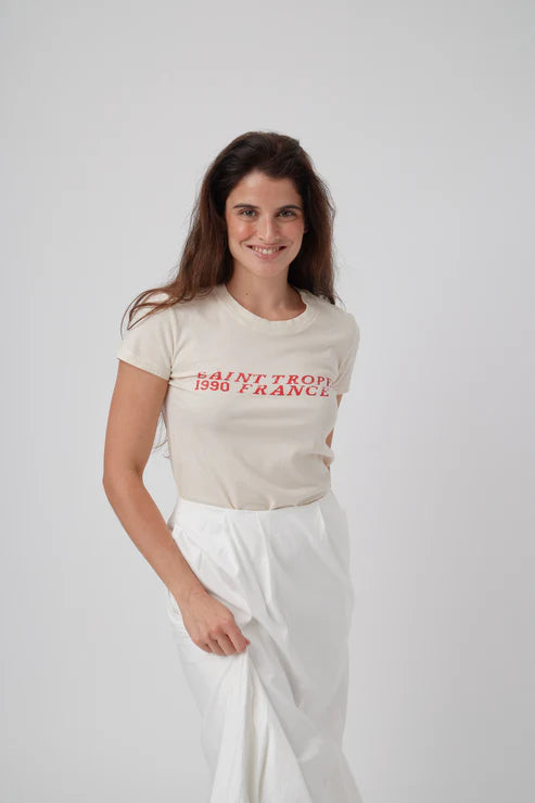 The Saint Tropez 1990 France tee is a nostalgic nod to the glamour and effortless chic of the French Riviera in the ‘90s. With a bold, retro-inspired graphic this tee brings all the luxe beach vibes and sun-drenched memories of one of France's most iconic coastal spots.