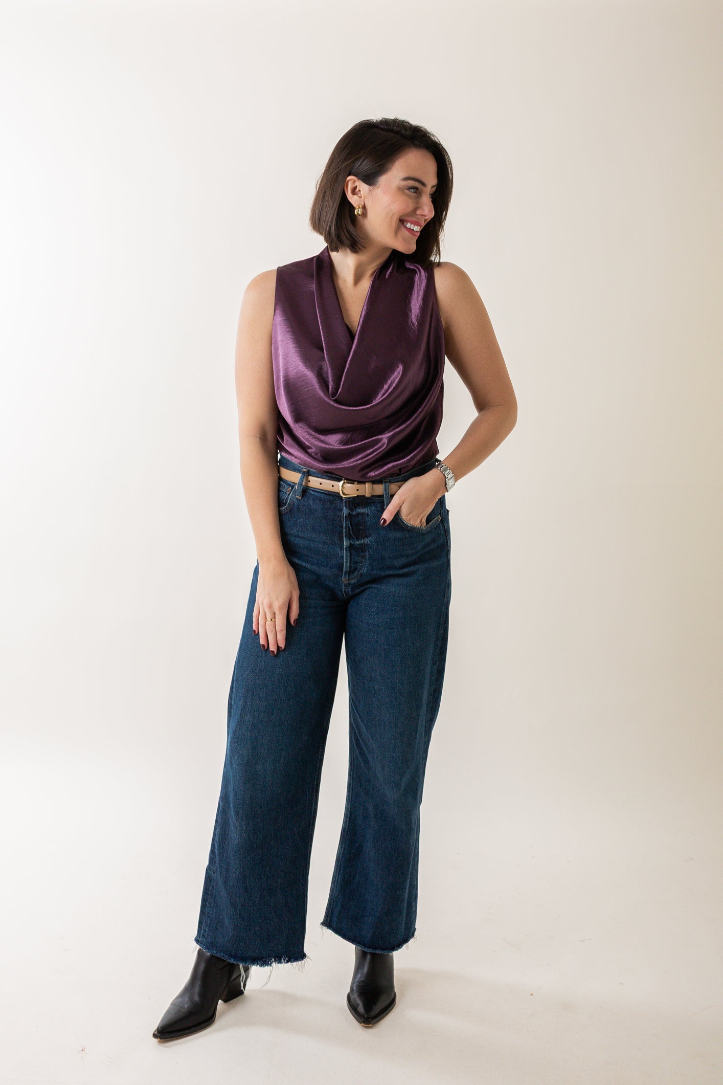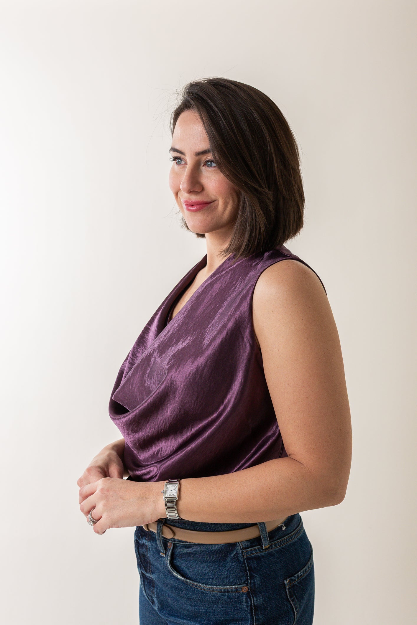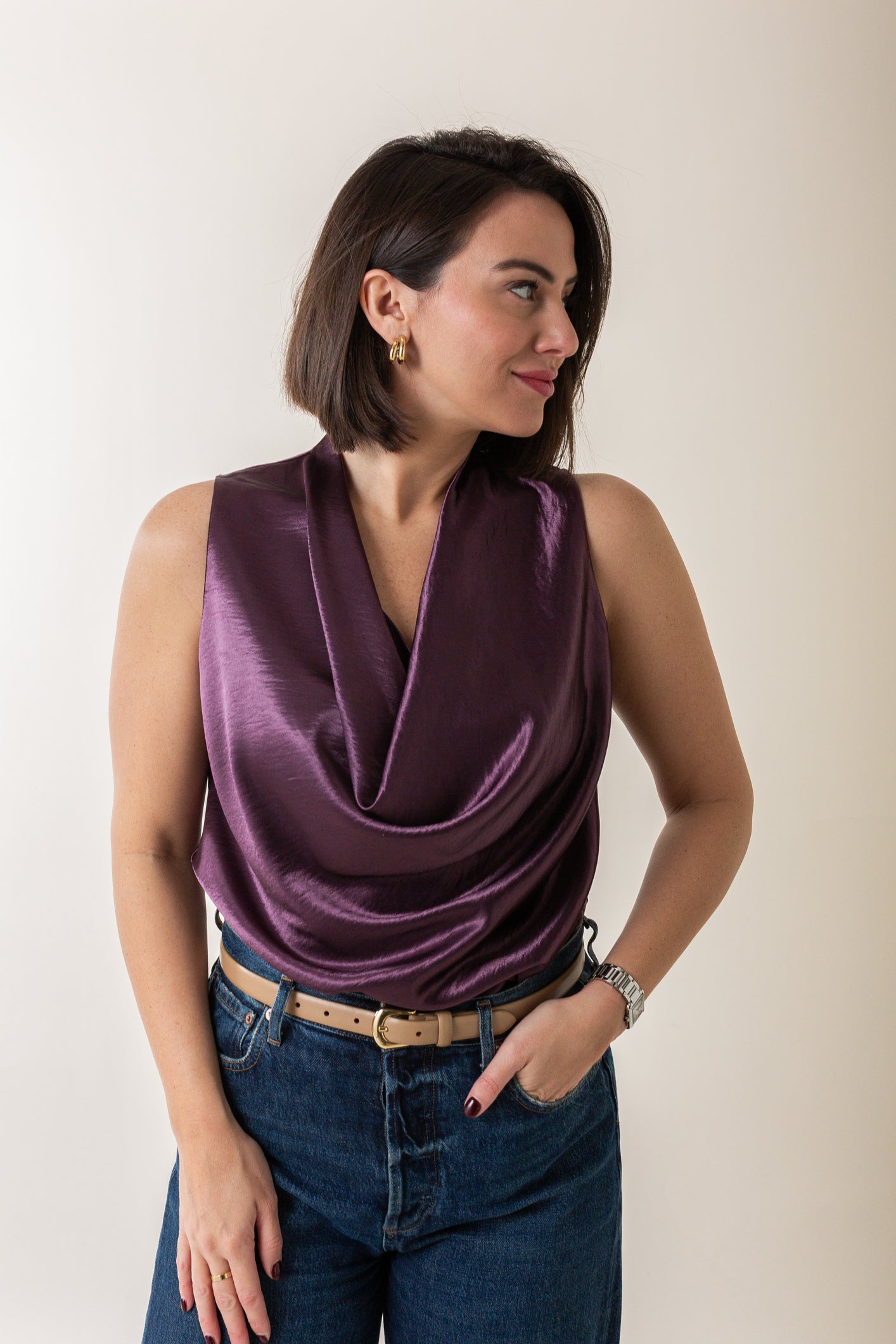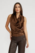 Elevate your wardrobe with the Lucy Paris Dorothy Satin Top, crafted from smooth, luxurious satin for a refined feel and luminous finish. Its elegant cowl neck with gathered detailing beautifully frames your neckline while softly draping your silhouette.
