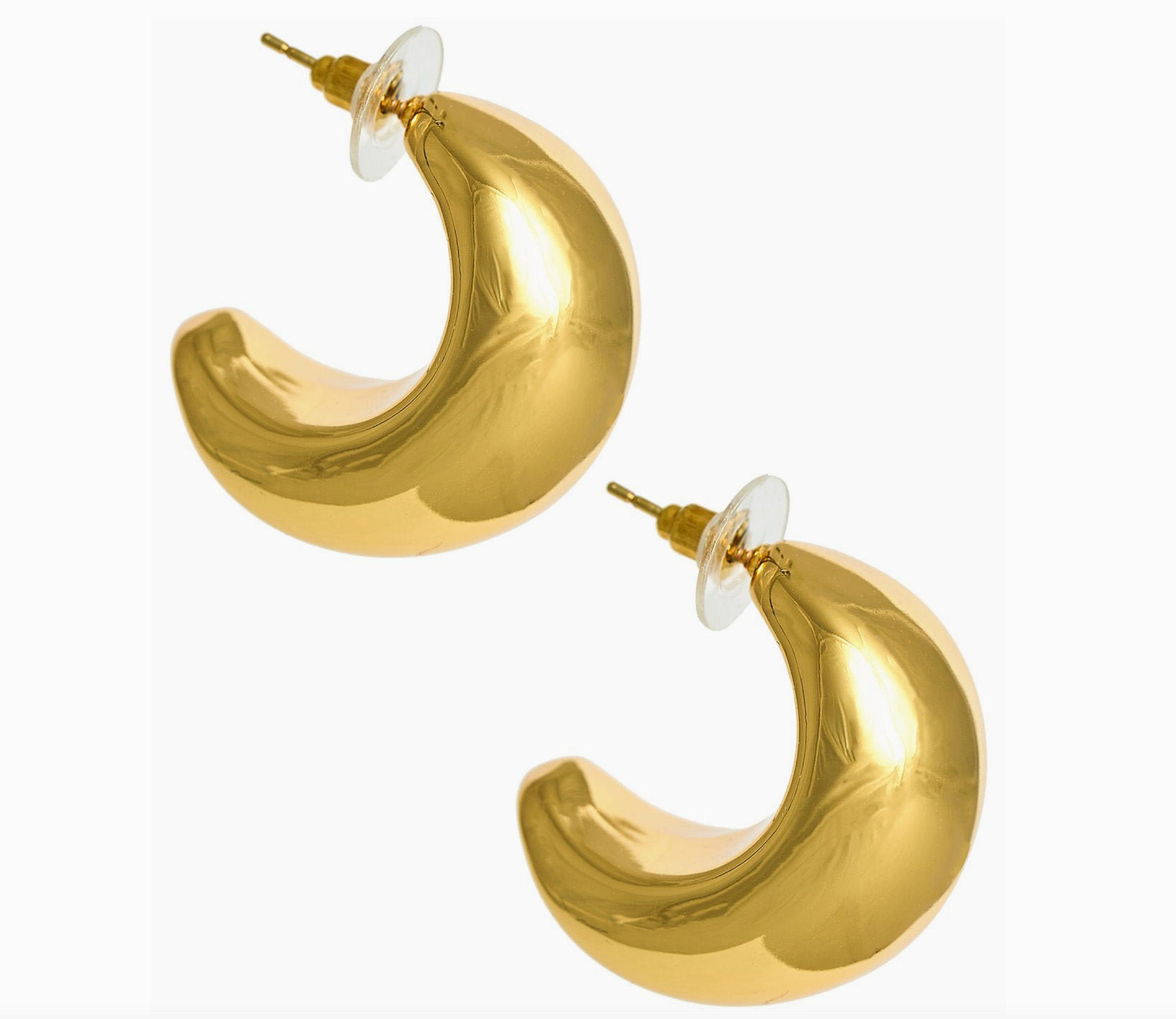 Elevate your everyday look with the bold and beautiful Goldie hoop earrings. Designed with a modern, sculptural silhouette, these hollow puffy hoops are crafted in luxurious 18K gold plating for high-impact shine without the weight.
