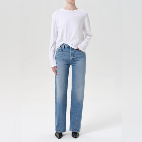 The Harper is crafted from regenerative cotton with just the right amount of stretch for comfort. Featuring a relaxed mid-rise fit, it has a flattering square top block and a straight leg. Made in vintage indigo denim, it showcases soft fading and whiskering for a perfectly worn-in, timeless look. A versatile piece that pairs effortlessly with everything from casual tees to elevated tops.