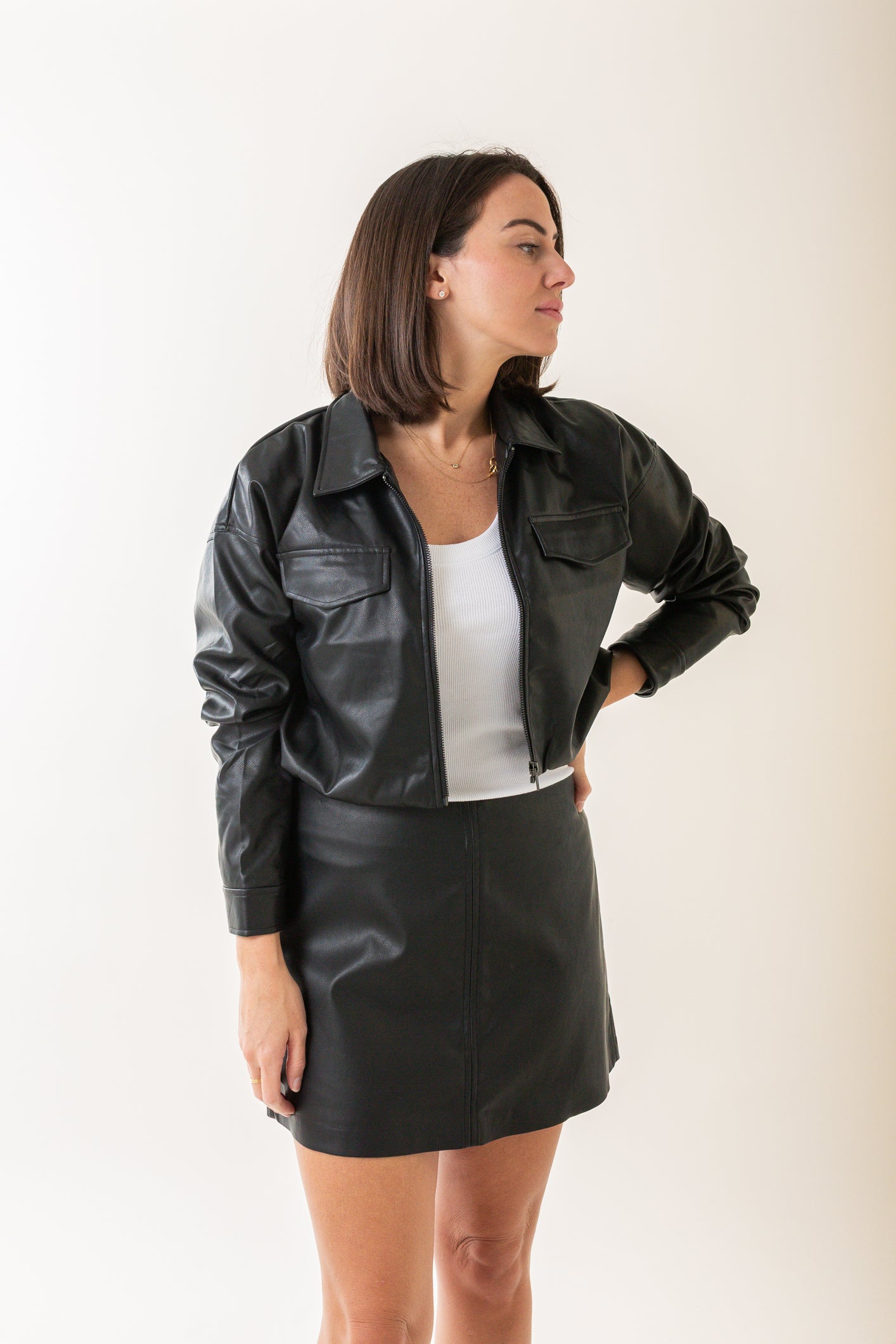 Matching Bottom: Melina Faux Leather Mini Skirt