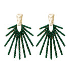 We love a good sunburst design! These olive green and gold drops are the perfect statement piece and look great with so many outfits! - 1 inch wide, approximately 2 inches long - post back - olive green beads - hammered gold upper piece