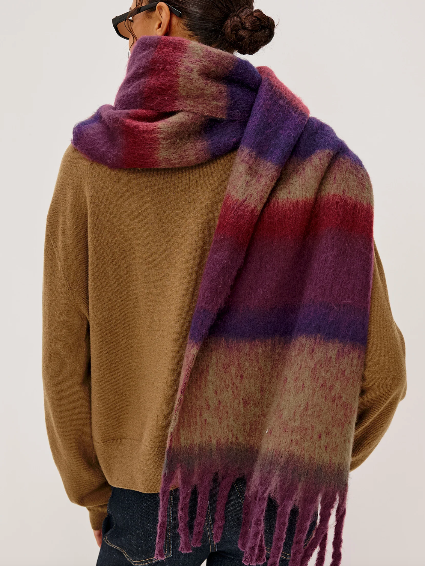 The Oslo scarf is soft with a fluid drape and gentle stretch. Finished with fringe trim, it offers versatile styling for any look.
