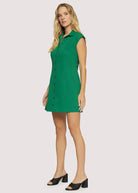 The Portofino Bliss Mini Dress combines refined elegance with thoughtful design elements. Featuring sophisticated functional buttons that enhance its aesthetic appeal, this dress offers a customizable fit with its adjustable waistband that accentuates your silhouette perfectly.