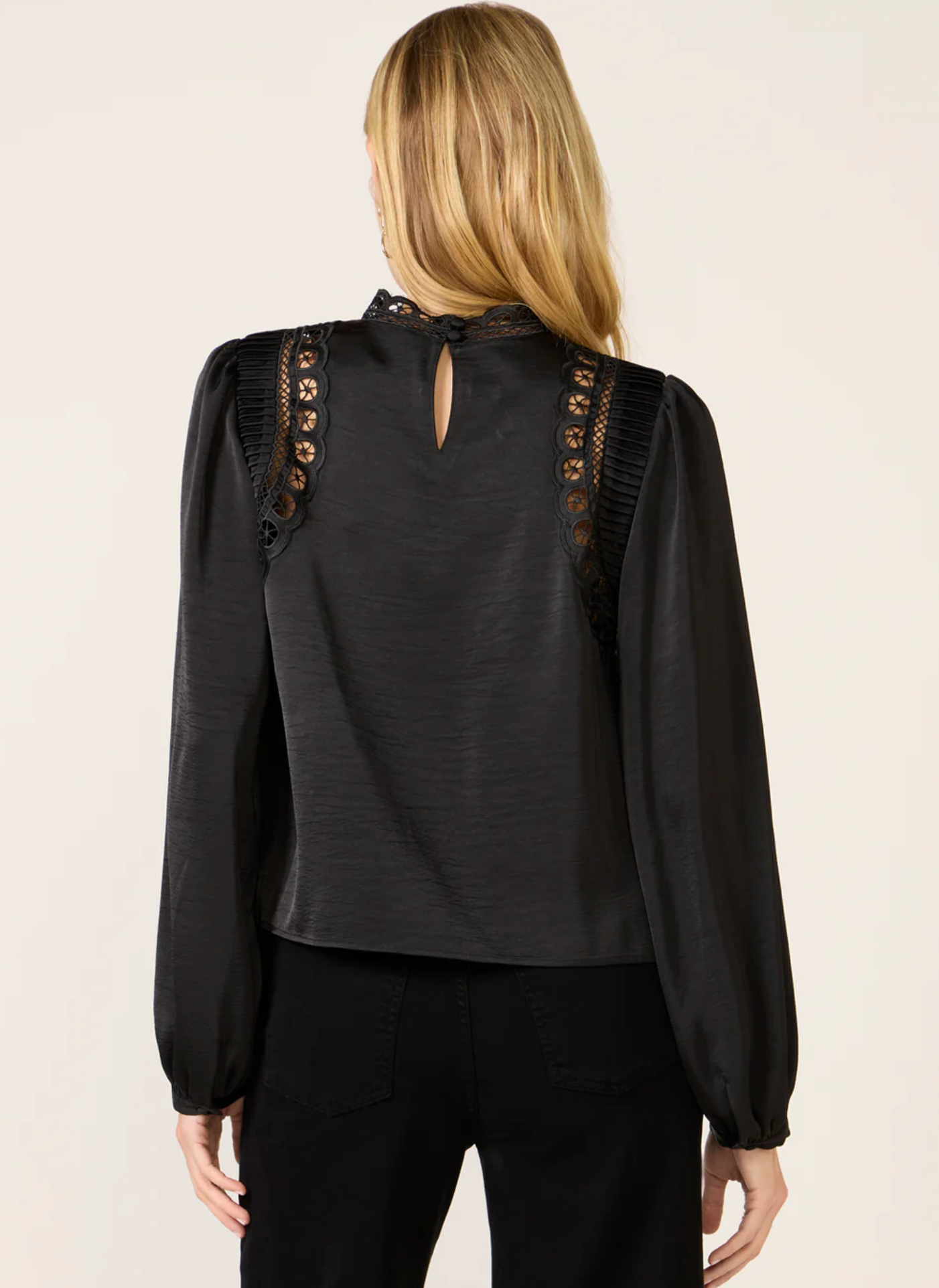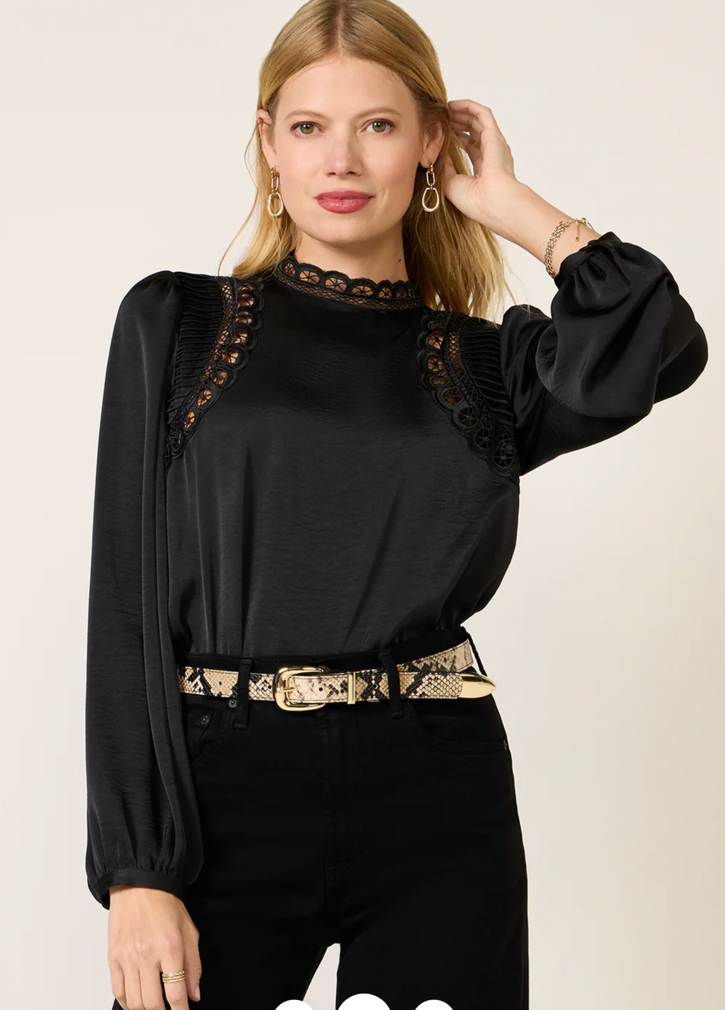 Embroidered lace details define this gorgeous satin blouse by Z Supply. Perfect for nights out and special occasions, the Silvana top features a flowy, cropped silhouette with a back keyhole button closure, pleated shoulders, and long puff sleeves.