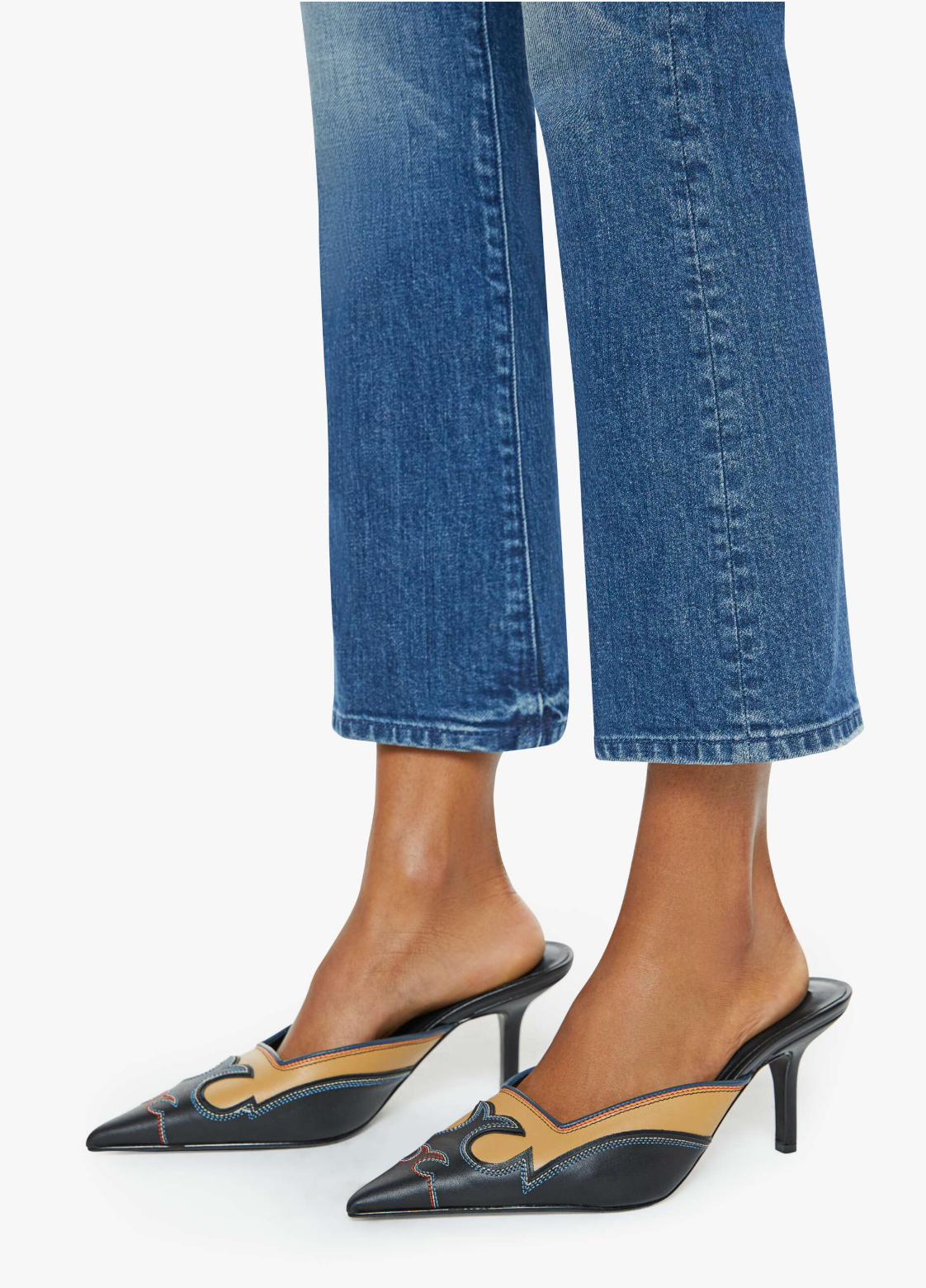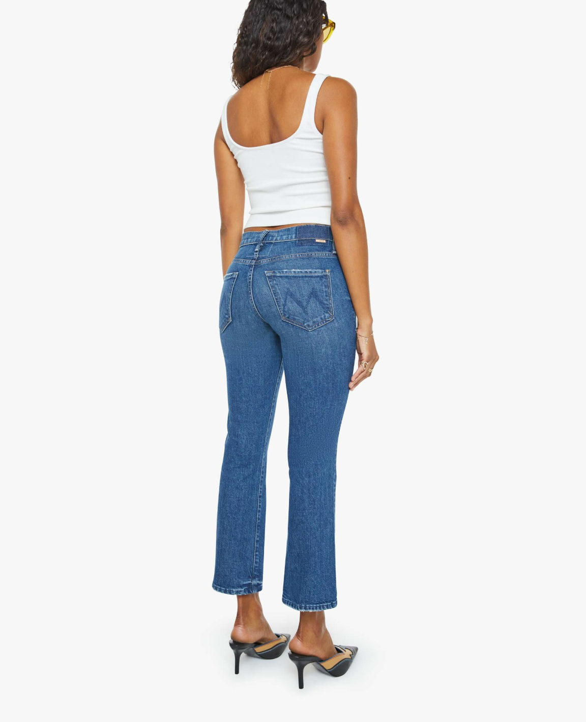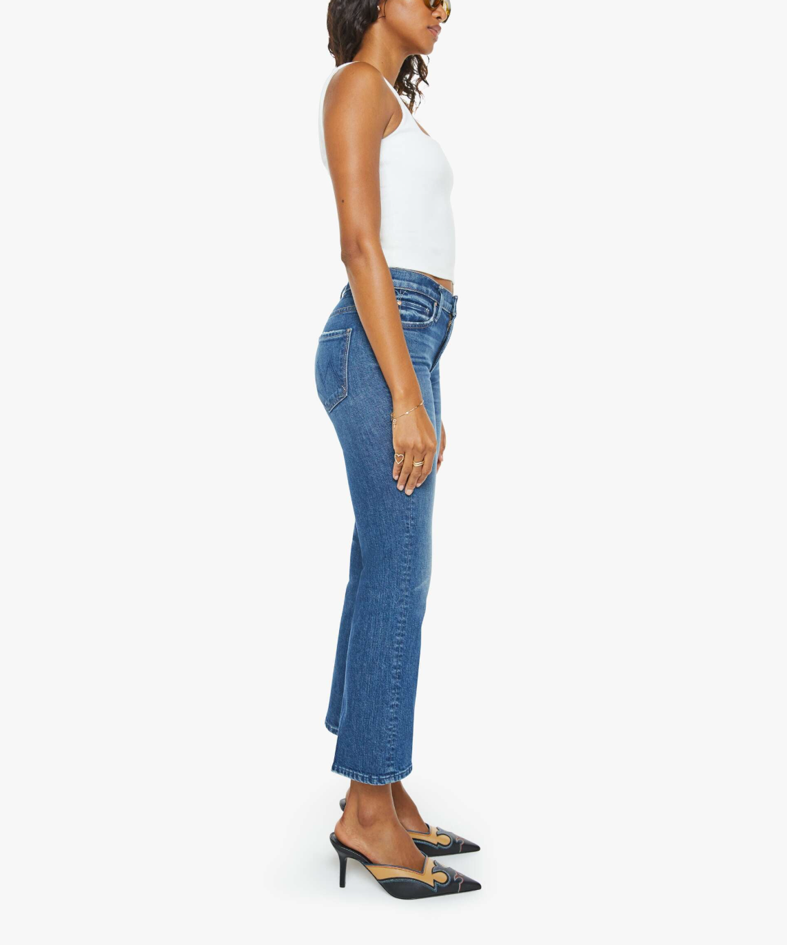 This iconic high-rise bootcut has an ankle-length inseam and a clean hem. Made from semi-rigid SUPERIOR denim, Where The Sun Don't Shine is a mid-blue with whiskering and fading at the knees.