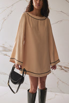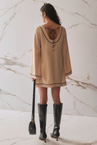 Designed with a unique vintage feel in mind, the Lyon dress is the perfect long sleeve mini to add to your wardrobe. With a gorgeous back tie detail, full-length flare sleeves, and boxy fit, style the Lyon dress with some knee-high boots to embrace a 60s retro look.