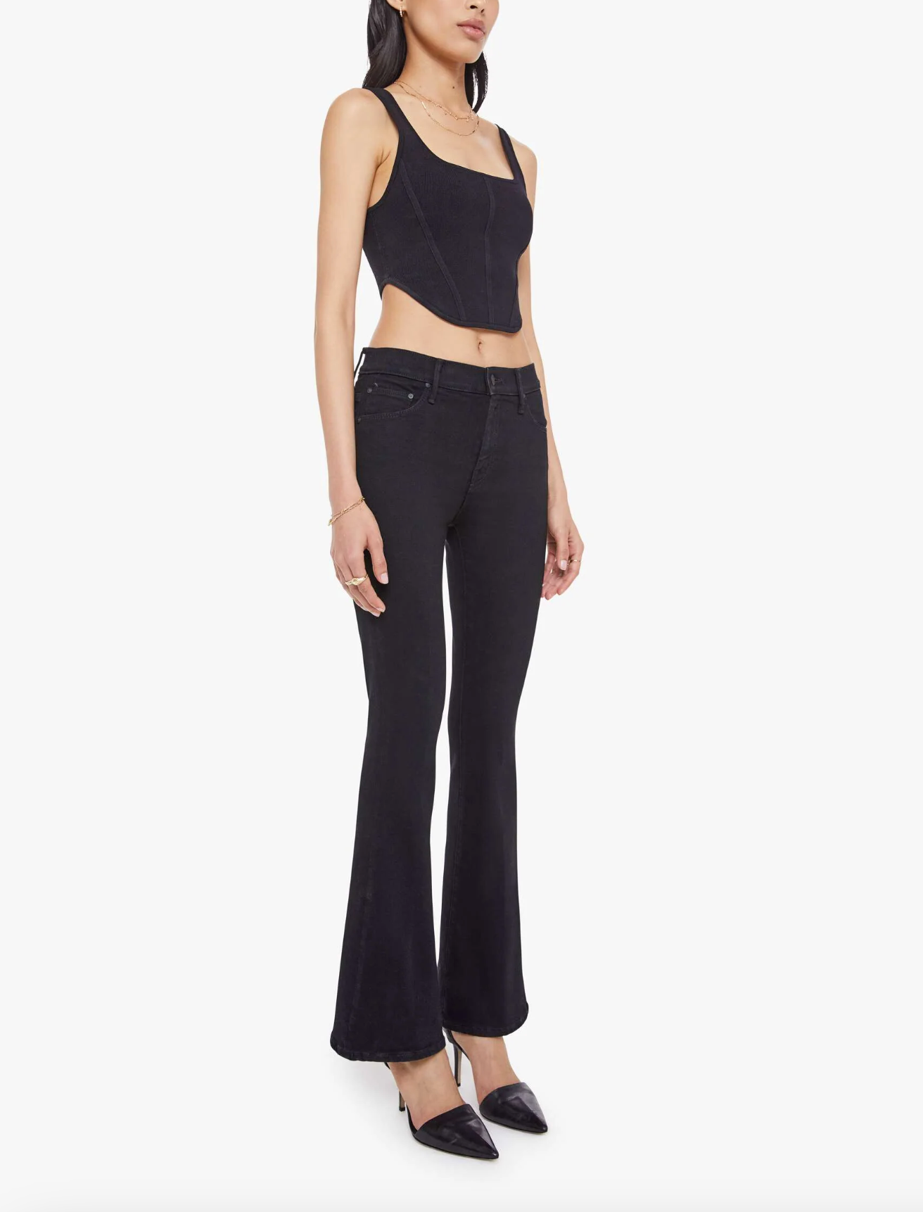 Sweet dreams. This cult-favorite flare jean has a mid rise with a 31-inch inseam and a clean hem. Cut from denim with a touch of stretch, Nighty Night is a dark black with tonal hardware.