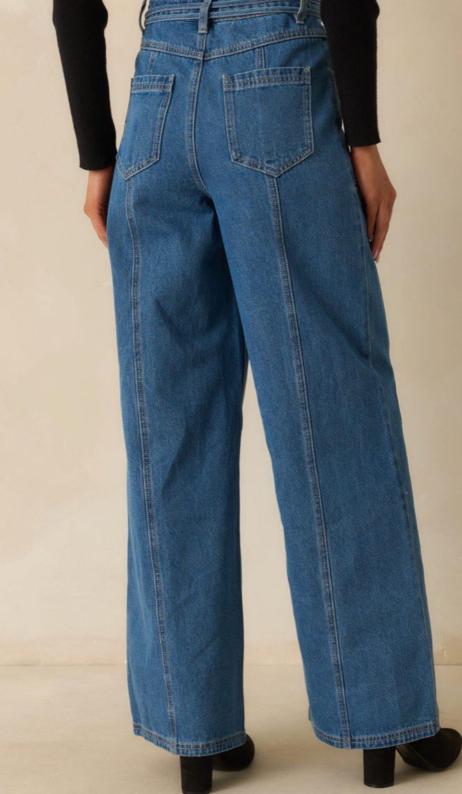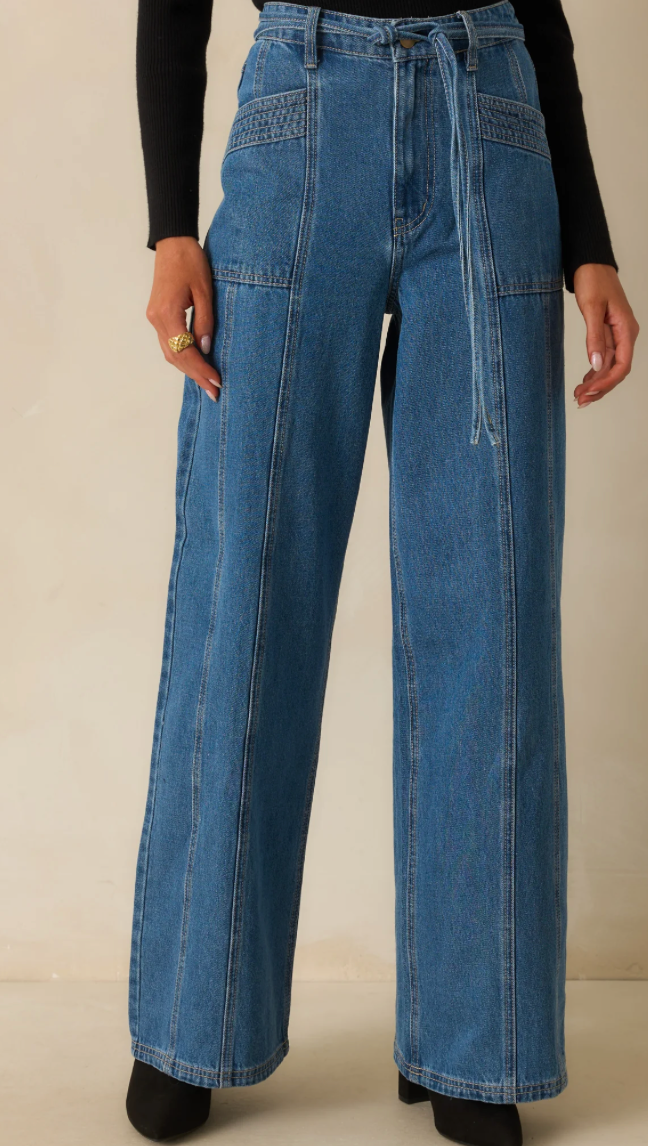 The MINKPINK Medium Wash Cotton Tully Wide Leg Jeans have that effortless cool factor, bringing a relaxed, modern vibe that feels both easy and elevated—perfect for days when you want comfort without losing style. These medium wash jeans feature a high rise waist, optional self-tie belt, functional zipper button closure, paneled design, functional patch pockets, and a wide leg design.
