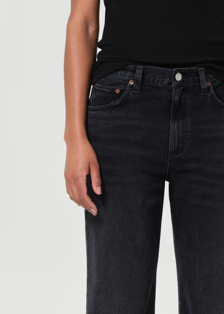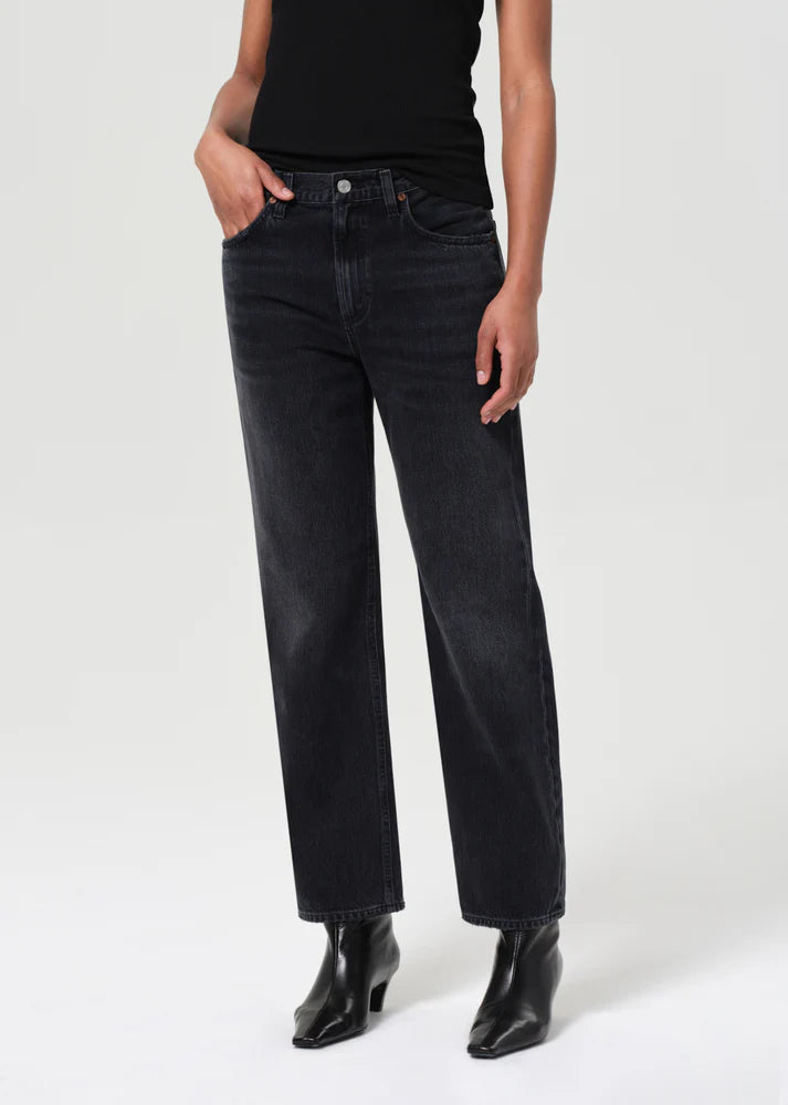 A timeless straight-leg silhouette with subtle edge. Designed with a mid rise and slim-straight fit through the leg, this pair feels lived-in yet refined—perfect for everything from oversized layers to minimal tanks.