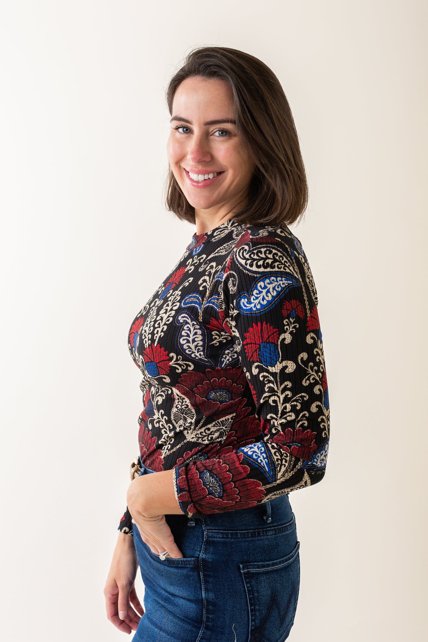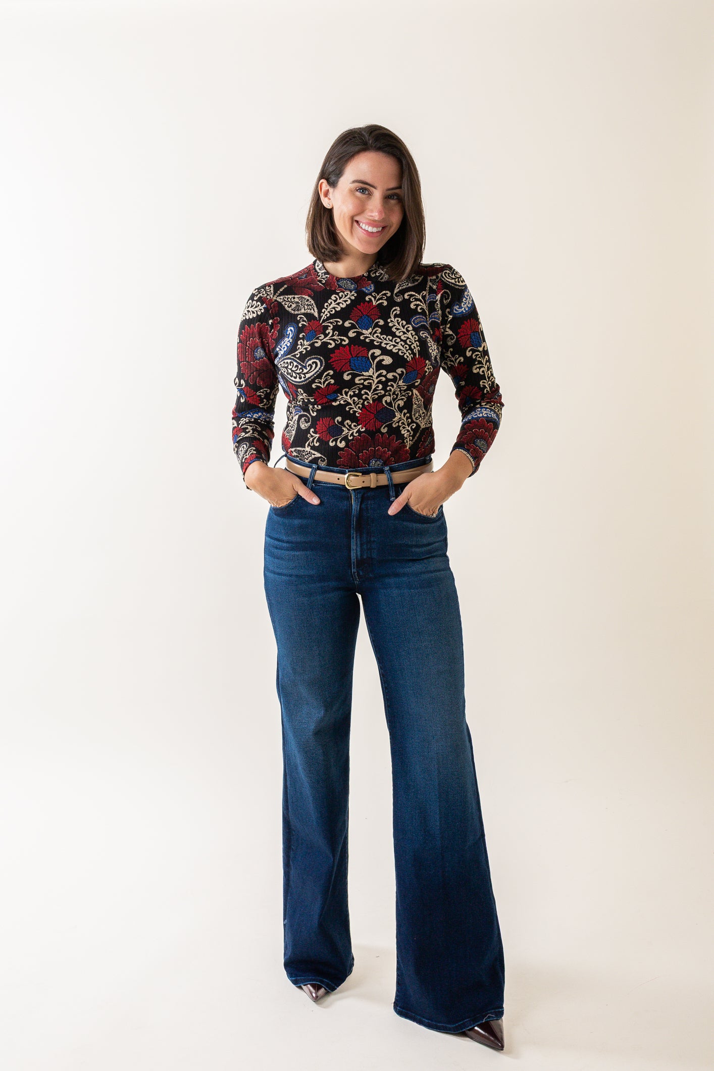 Fit: True to size. Fitted, with stretch. Model is 5'5" and sized up to M for slightly roomier fit.
