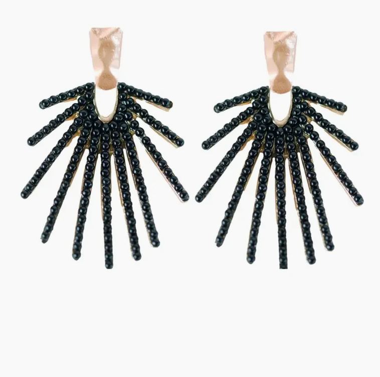 We love a good sunburst design! These gold and black drops are the perfect statement piece and look great with so many outfits! We especially love them with olives or crisp whites!