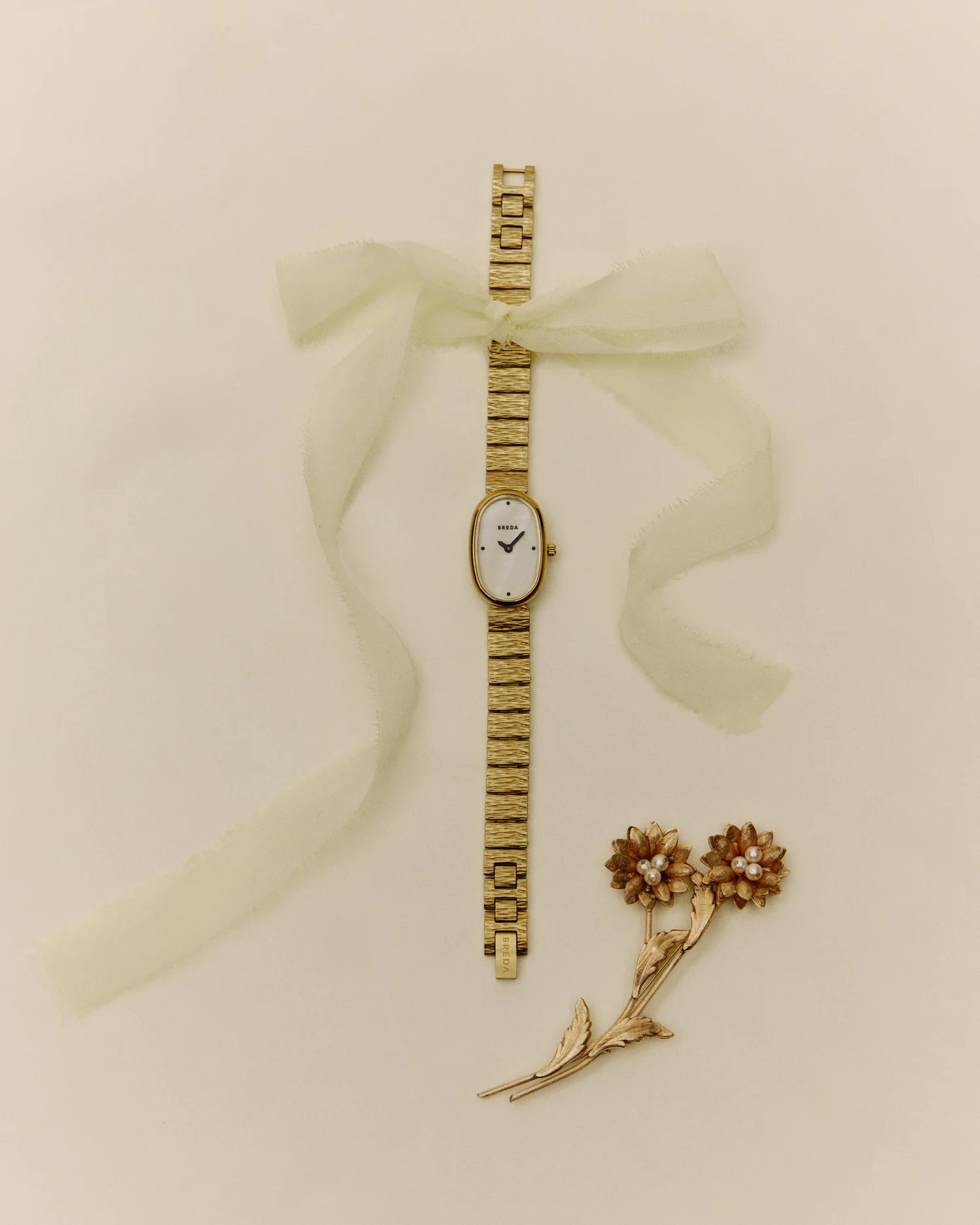 BREDA 'Jane Revival' Gold and Ivory Metal Bracelet Watch, 23MM