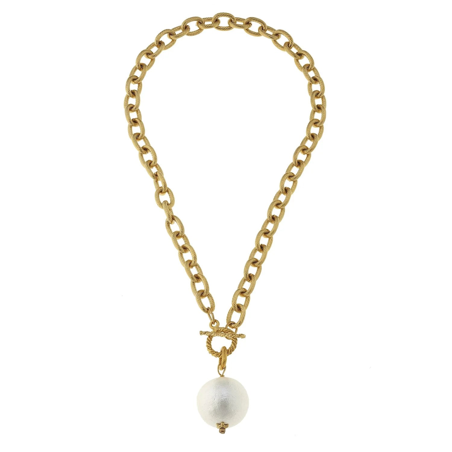 Made from compressed cotton that's been tightly spun, cotton pearls result in lighter designs while achieving the same look as genuine pearls.