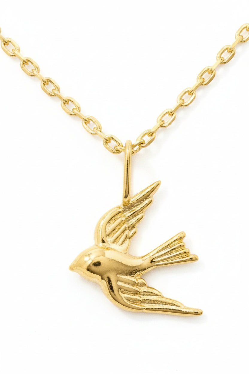 Gold Dipped Flying Bird Pendant Necklace