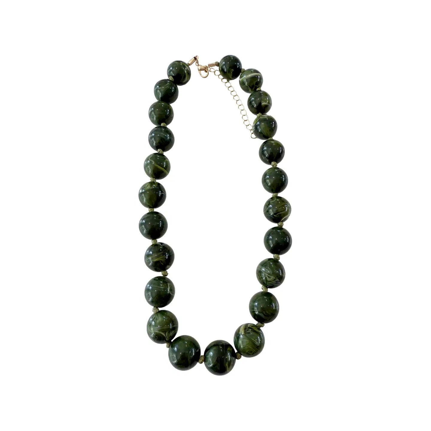 Elevate your look with this bold and timeless Mabry Beaded Statement Necklace. Featuring large, glossy marbled brown beads with natural variations and swirls, this piece brings a striking yet sophisticated edge to any outfit. The adjustable gold-tone clasp allows for the perfect fit, whether you’re styling it with a chic evening dress or a casual daytime look.