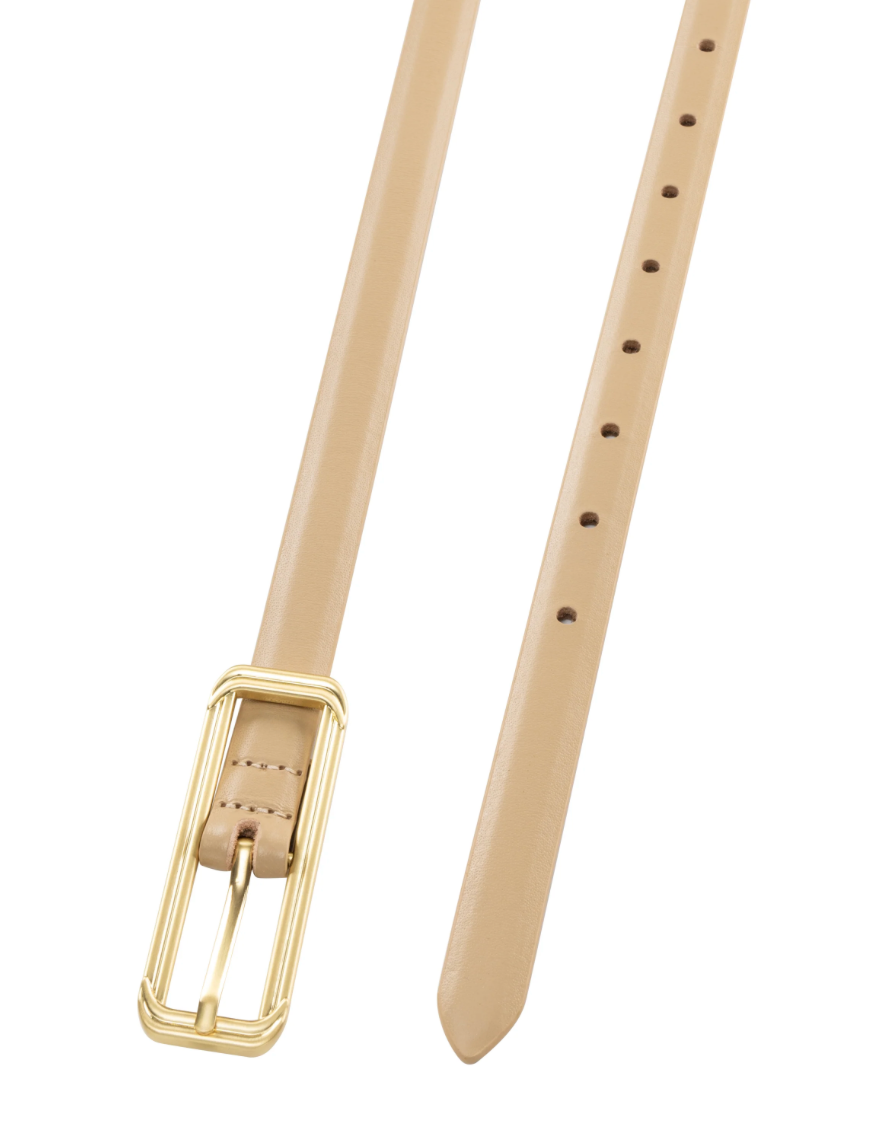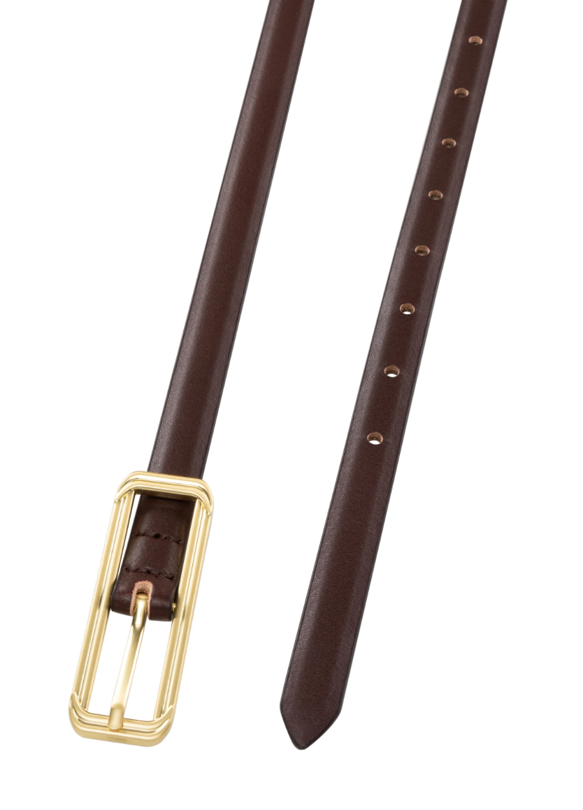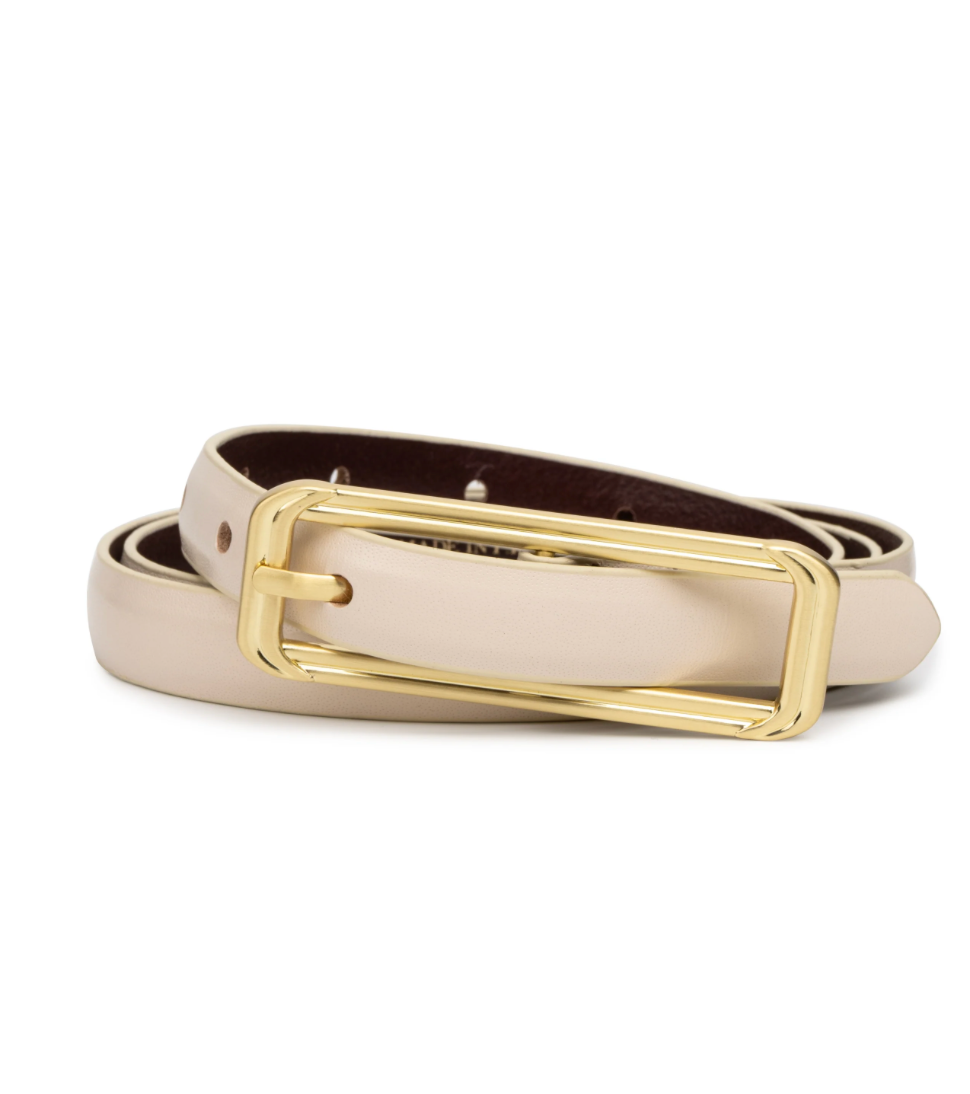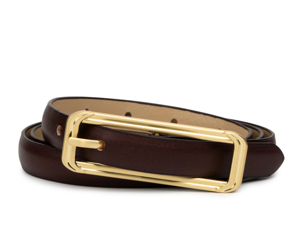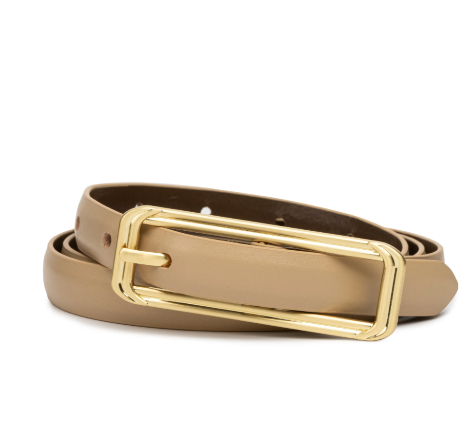 The Picarra features a sophisticated new brushed gold buckle on SANCIA’s classic vegetable tanned leather belts. The minimal rectangular buckle features sleek curved edges and is the perfect skinny belt for an understated look. Style this belt with a simple jeans and tee outfit for an elevated touch.