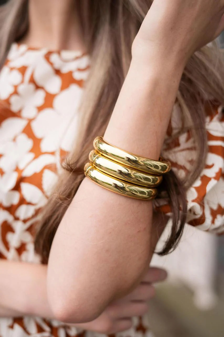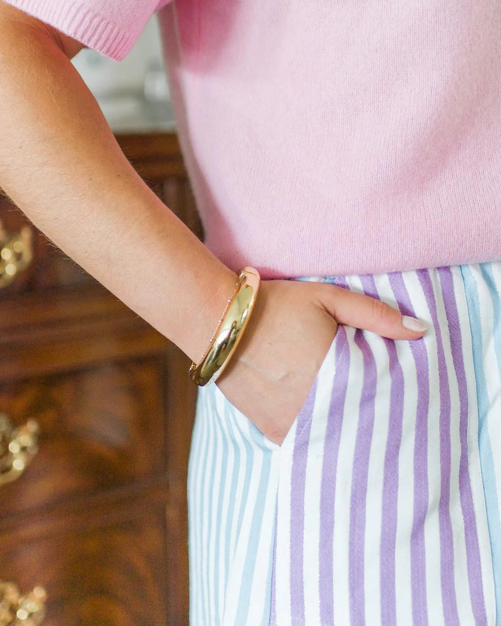 The Quinn bracelet from the Meeghan Mullin collection with Lisi Lerch is a quintessential gold bangle that serves as a perfect staple accessory. Its versatile design makes it ideal for pairing with other bracelets and earrings, effortlessly elevating any outfit with its timeless elegance and sophistication.