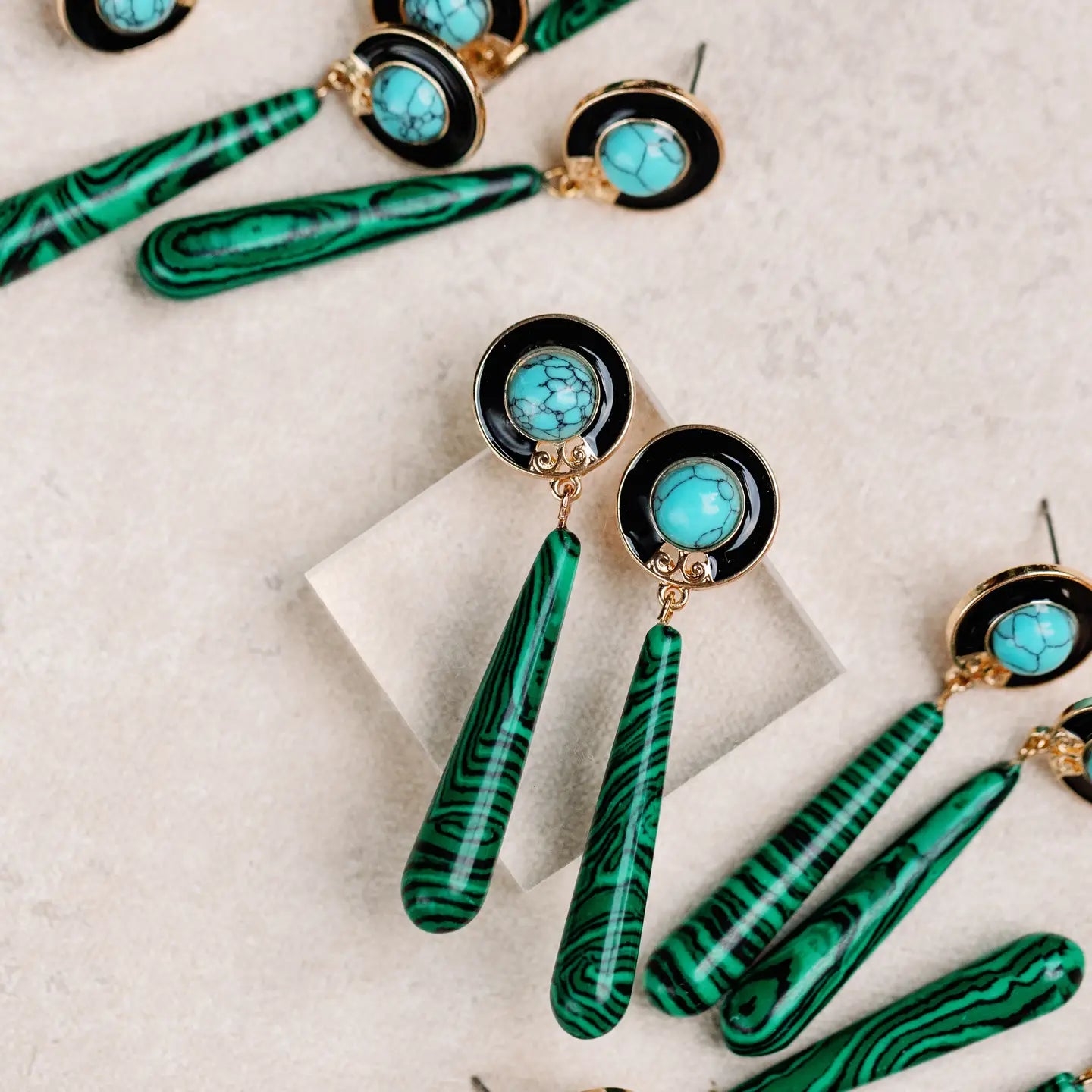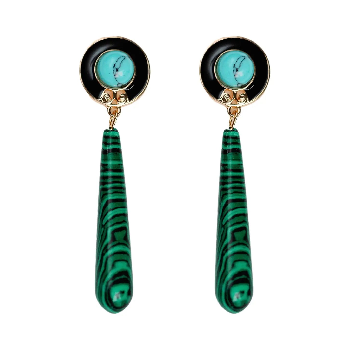 Turquoise and Malachite Drop Earrings