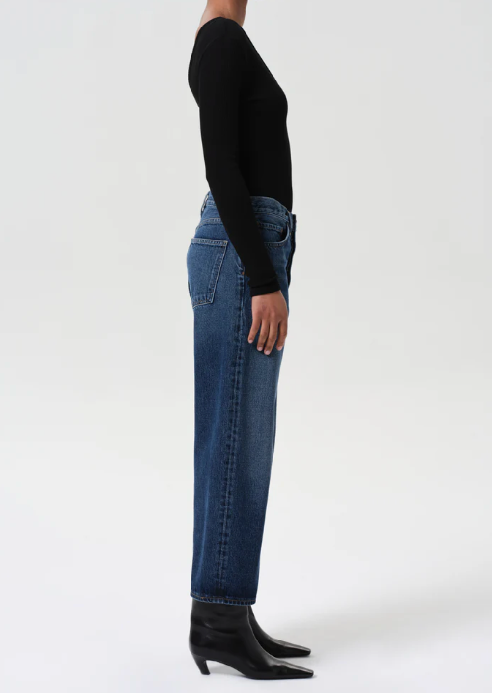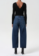 The Arc Jean features a subtle bow-leg silhouette with an easy, relaxed top block—offering a directional shape that feels effortlessly cool. Crafted from non-stretch cotton denim in a bright dark indigo, this fit is designed for all-day wearability with a soft hand feel. Perfectly paired with boots, the Arc is a go-to for any day and elevated layering.