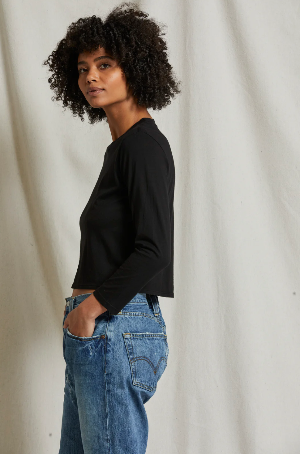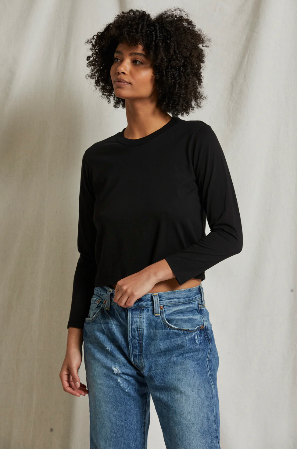 If you’re no stranger to our bestselling Springsteen Tee, then allow us to introduce you to Bruce. Cut in our soft supima cotton, this long sleeve crew neck tee is the perfect weight to wear all year. Hits at mid waist and features full length long sleeves and a rounded neckline.