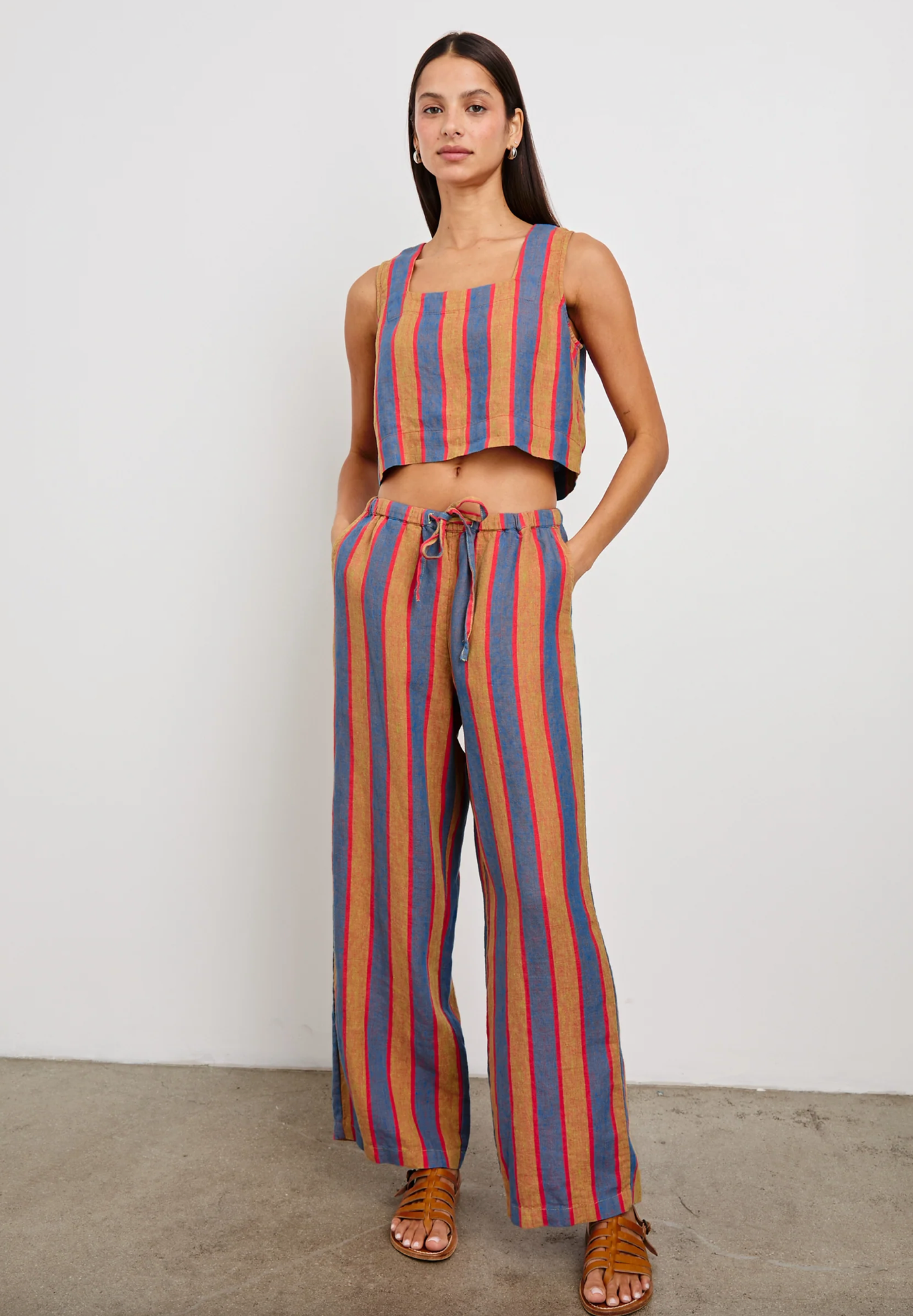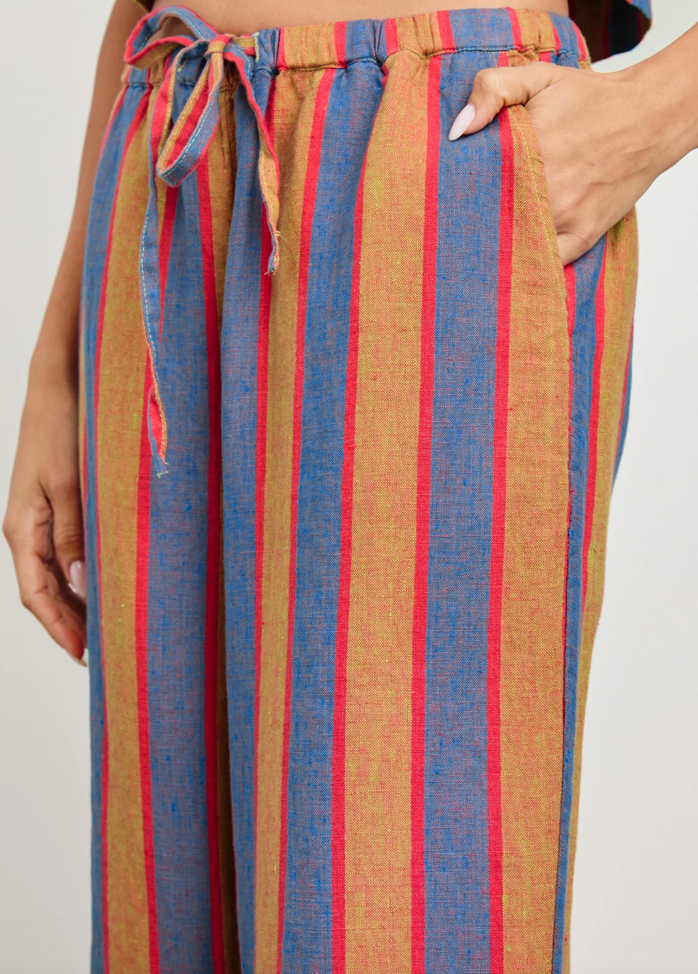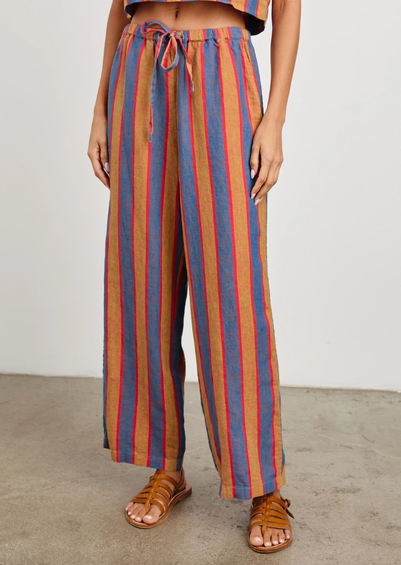 The Emmie is an essential pant that emphasizes comfort. This wide-leg, high-rise style is crafted from a heavy linen fabrication and features an adjustable drawstring for a customized fit.