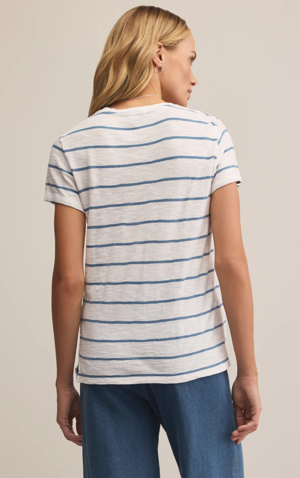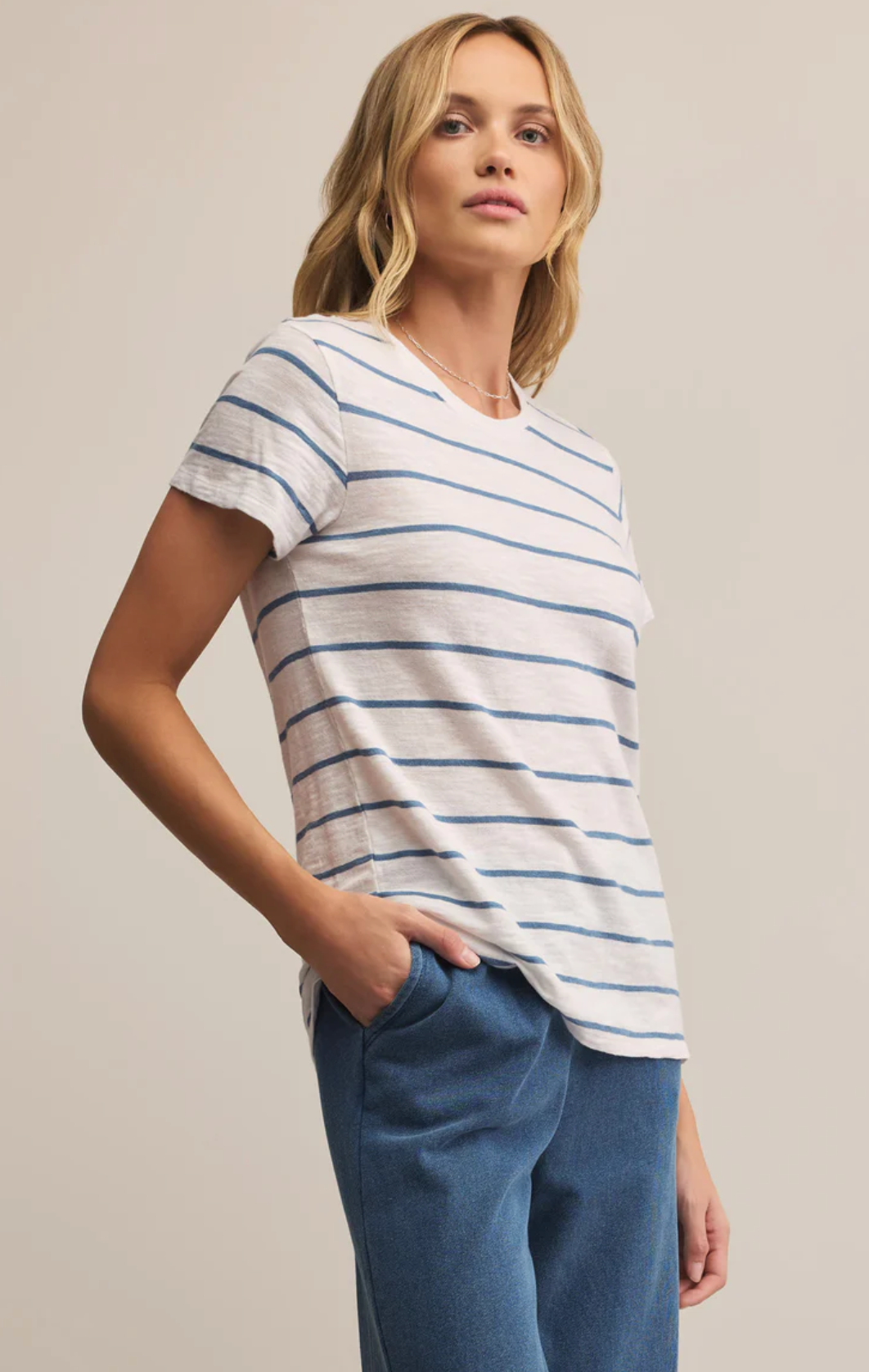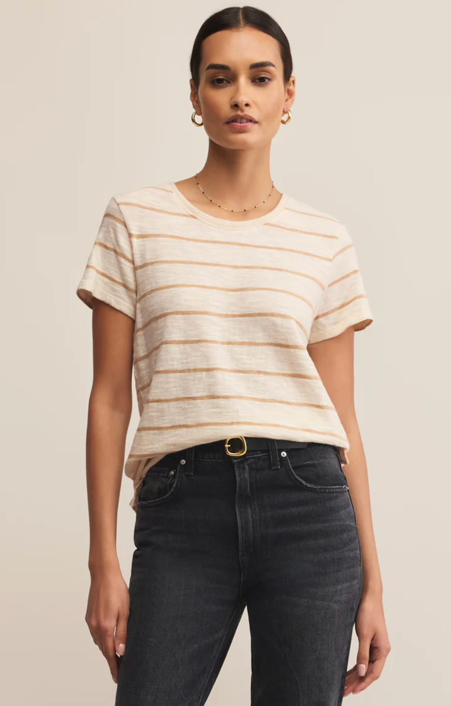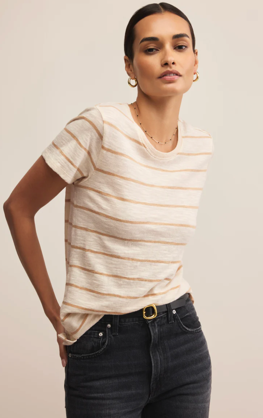 Made from our premium brushed slub jersey, this crew neck tee is soft, lightweight, and endlessly wearable. Classic stripes and a relaxed, tuckable fit make it a go-to for those “what do I wear” days.