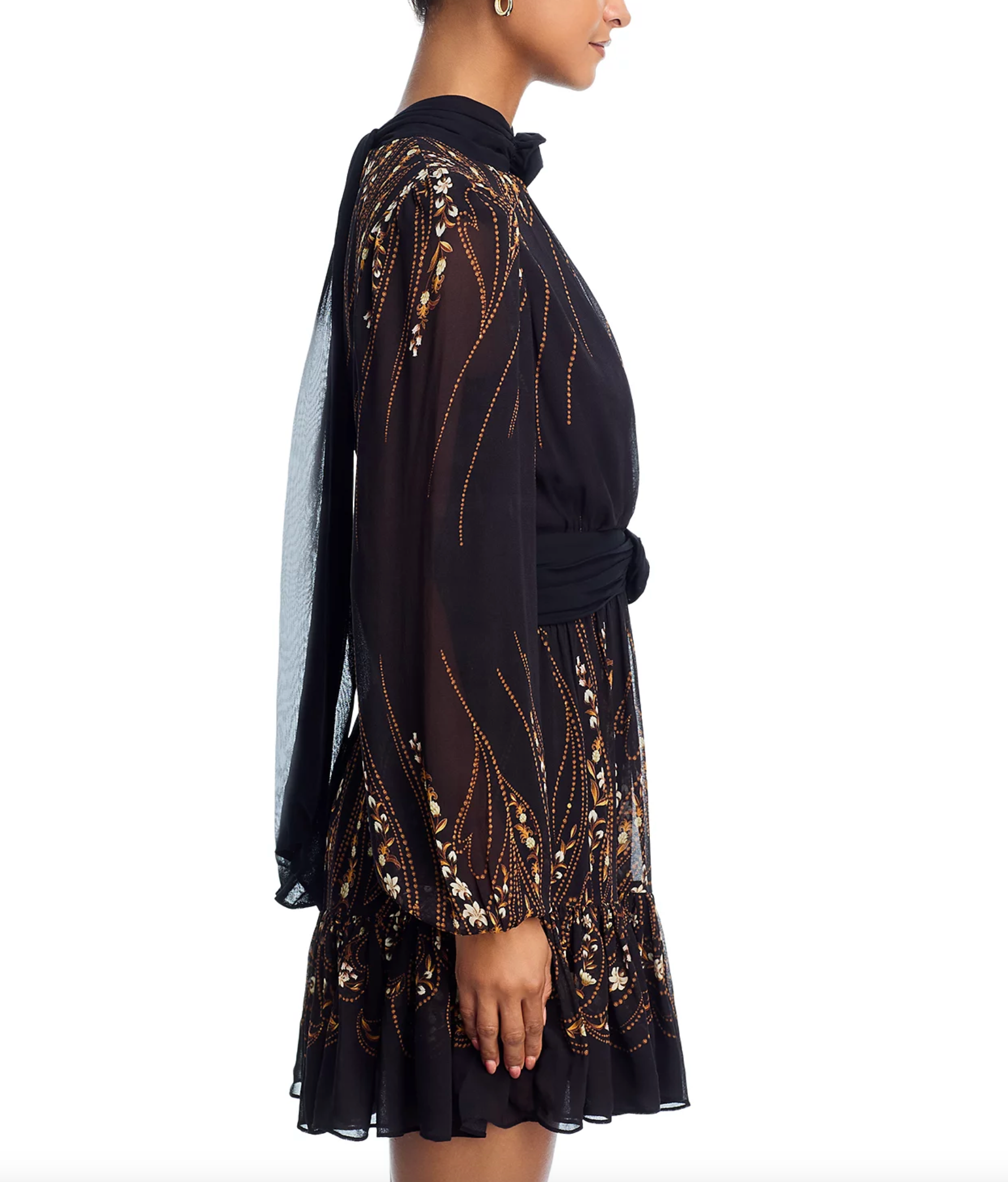 Garden Silhouette Black Long Sleeve Mini Dress