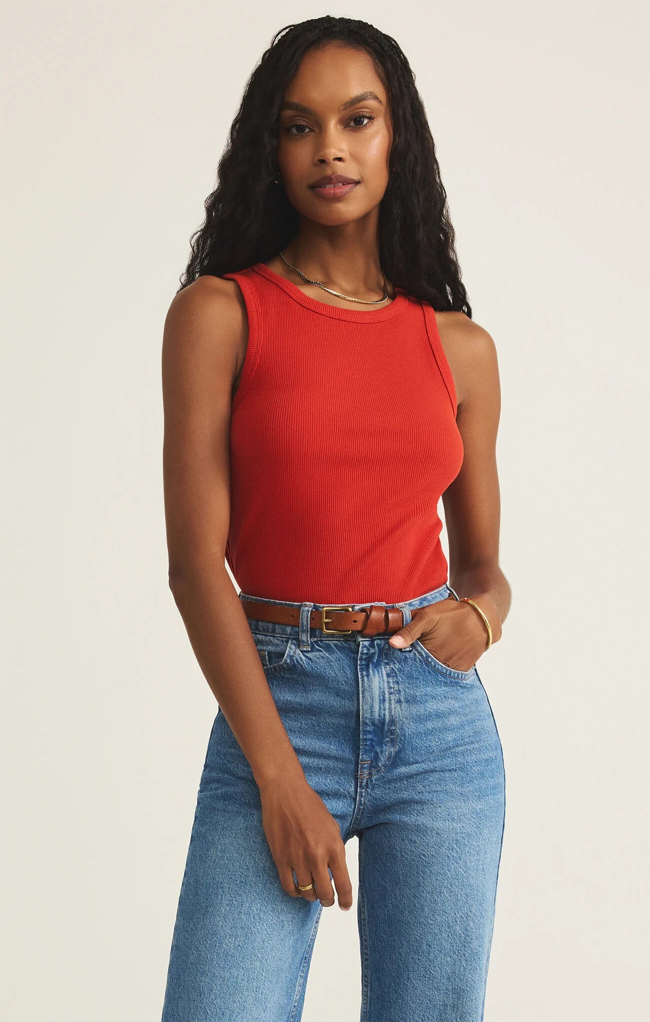 This crewneck tank is soft, sleek, and bra-friendly, perfect as a base layer in cooler weather or on its own as an elevated option. With its comfy ribbed fabric and fitted, tuckable design, it’s the kind of piece you’ll keep reaching for, no matter the season.