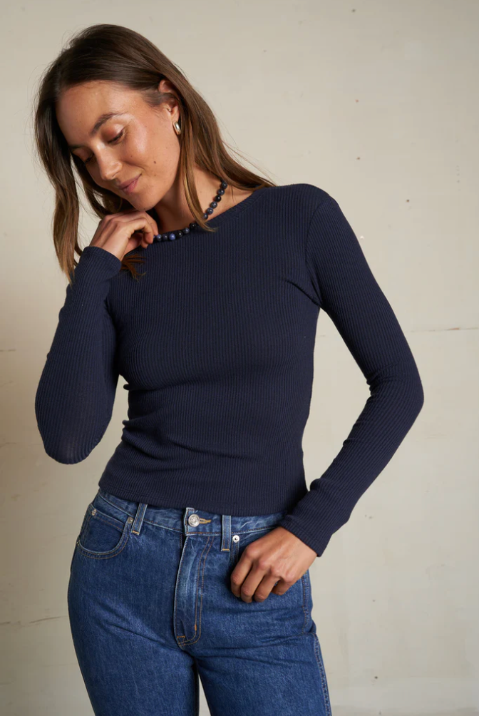 A classic long sleeve silhouette cut; the Jolie features a crew neckline and full length sleeves in a soft loose knit sweater rib. Adding in a touch of texture to classic shapes does something magic to your outfit.