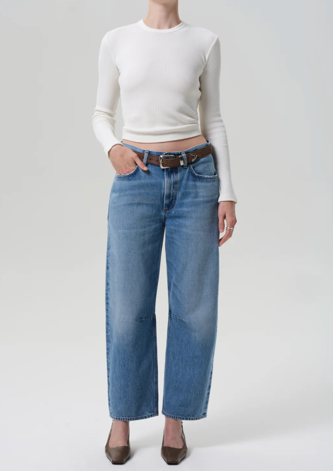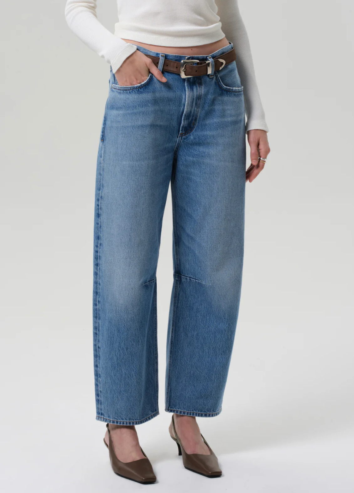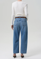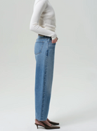 The ‘Miro’ offers a subtle take on the barrel silhouette, cut high at the waist with a relaxed shape that softly tapers to the ankle. Crafted from rigid regenerative cotton, the medium-to-light indigo wash is finished with authentic fading and whiskering for a naturally worn-in look. A modern essential—pair with soft knits, crisp shirting, and any shoe in your rotation.