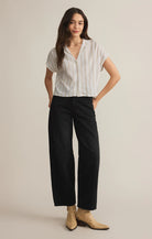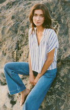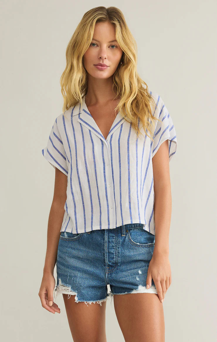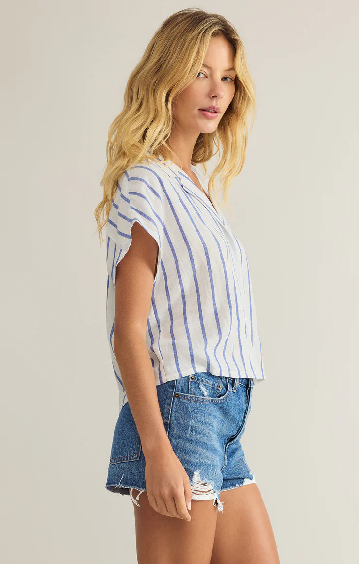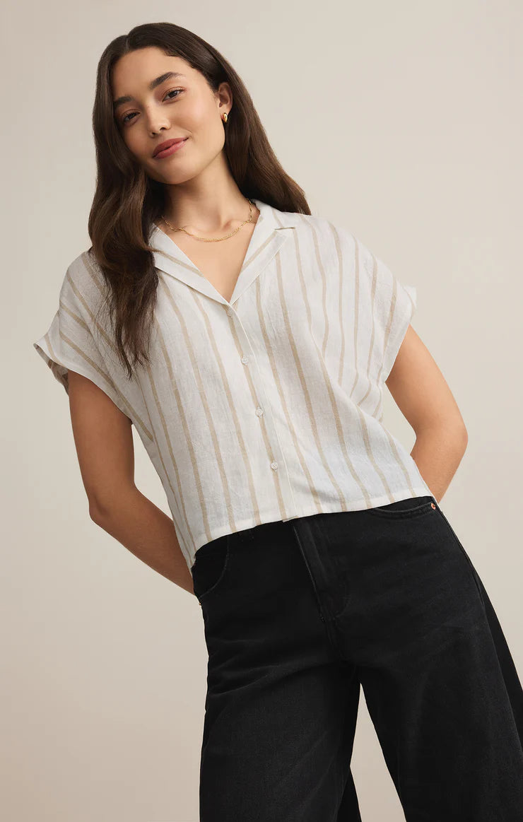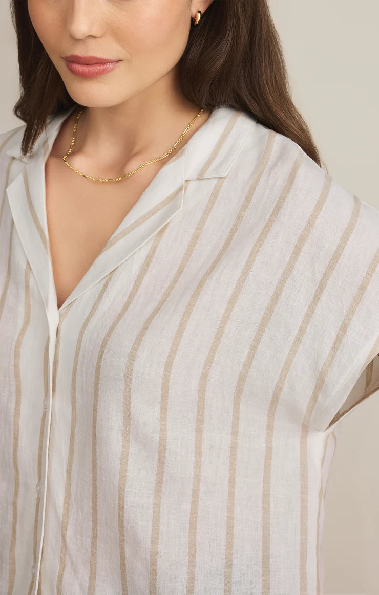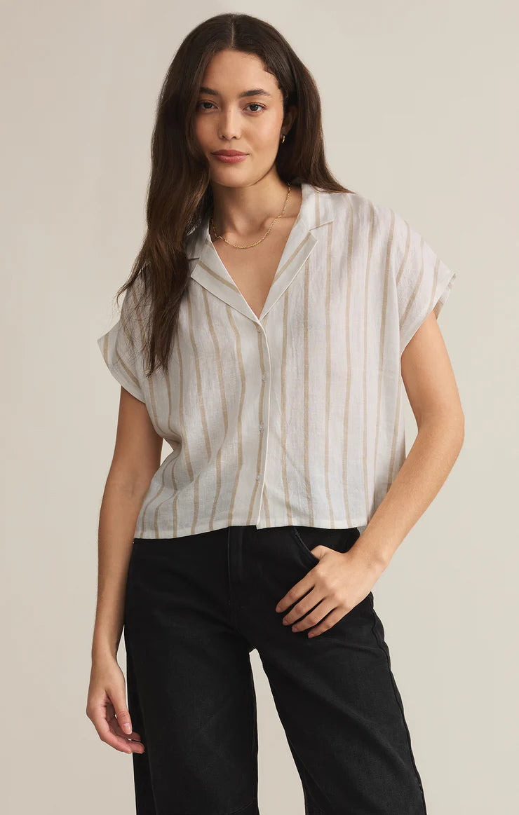 Crafted from textured linen, this striped button-up has a laid-back vibe with open sleeves for comfort and dded style. The midweight fabric makes it ideal for warm afternoons or layering under jackets on cooler days.