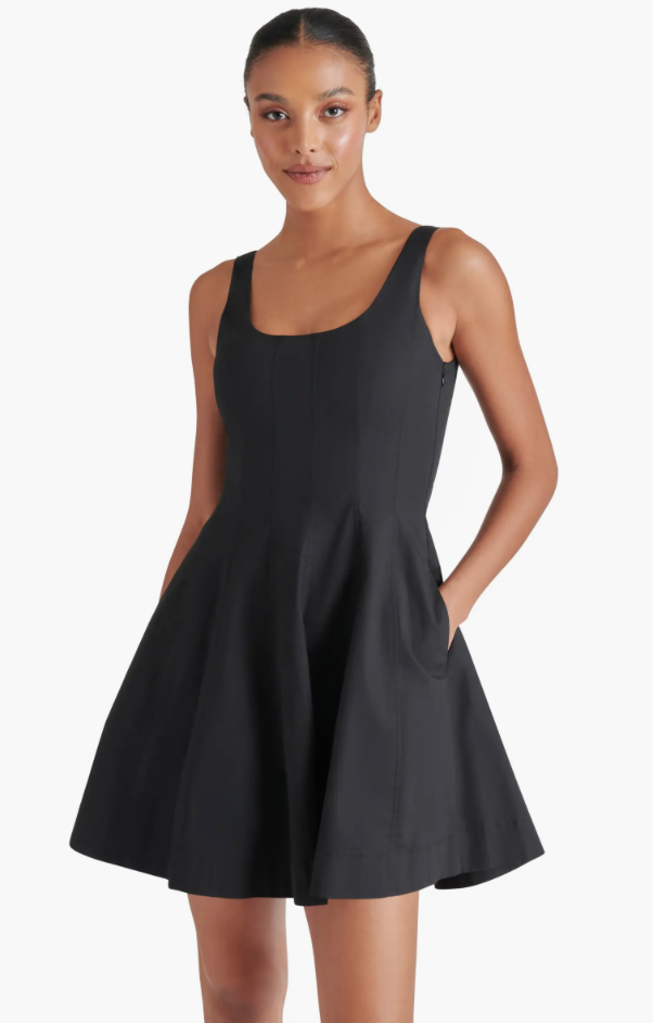 Turn up and twirl in a stretch-cotton dress perfected with a pair of pockets and cut to a leg-baring length.