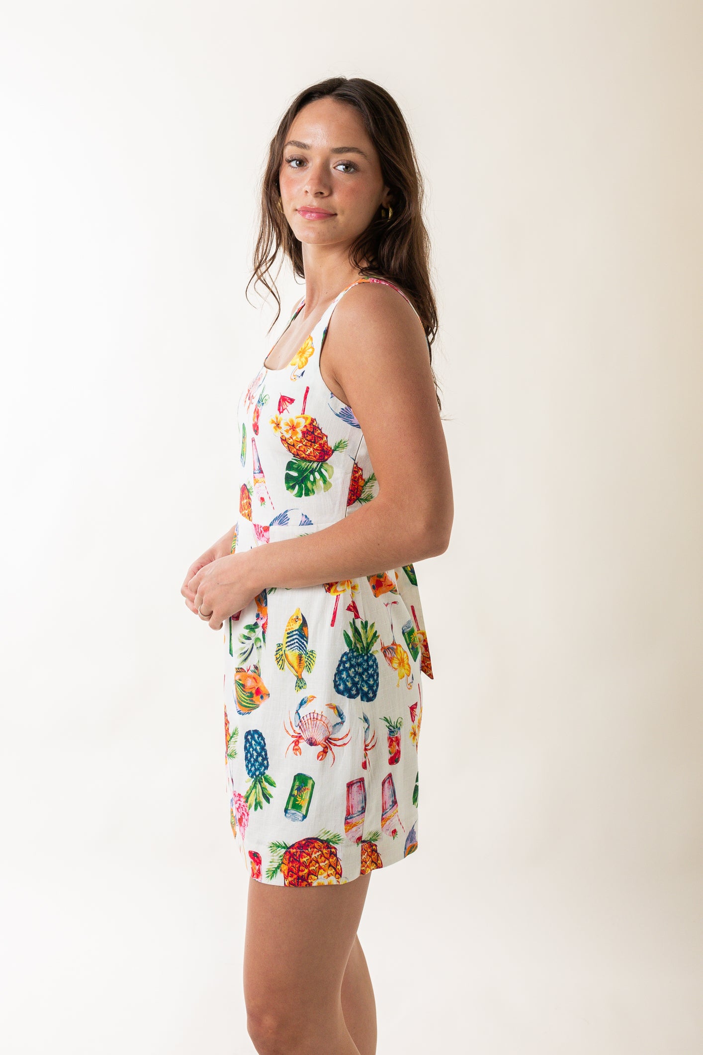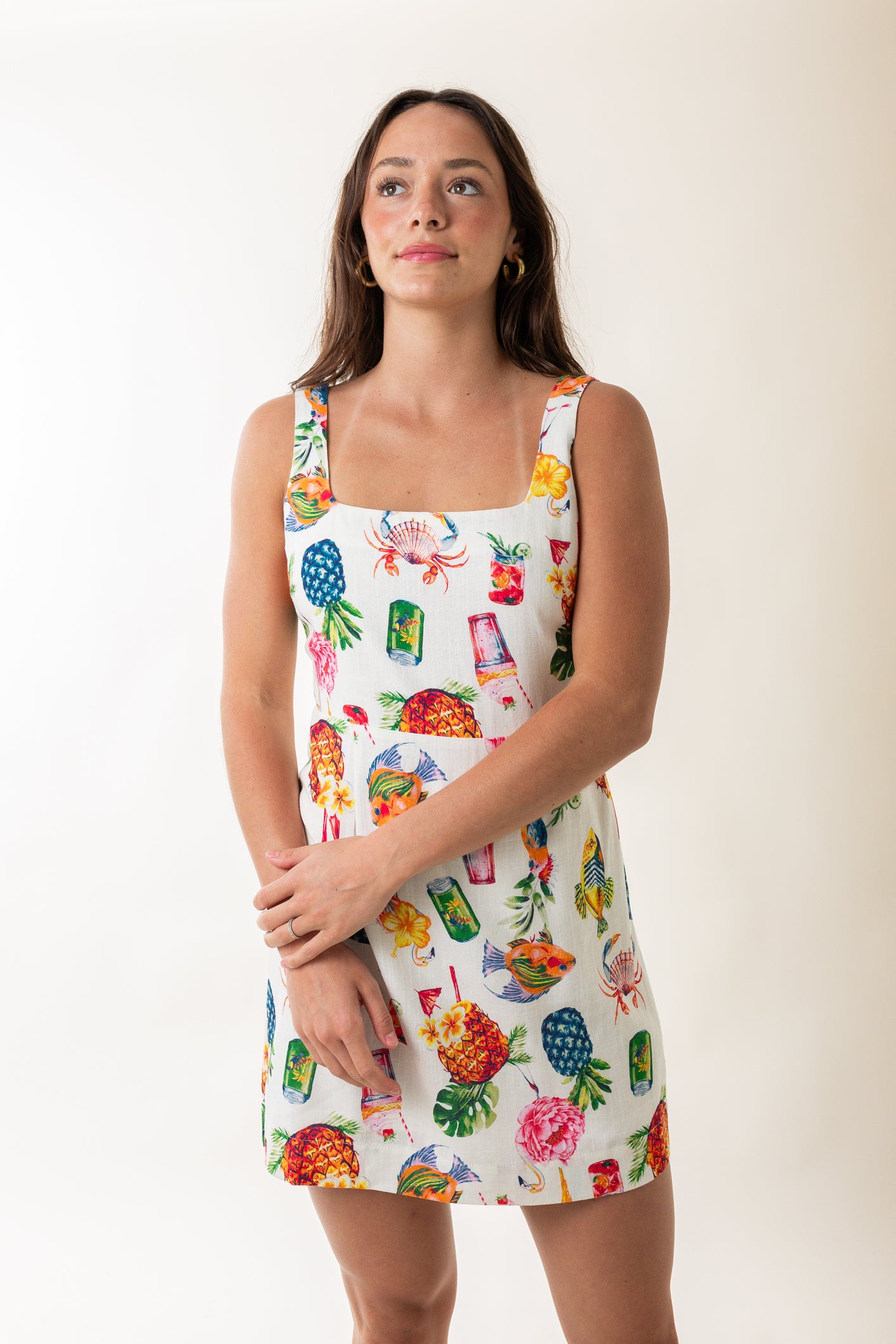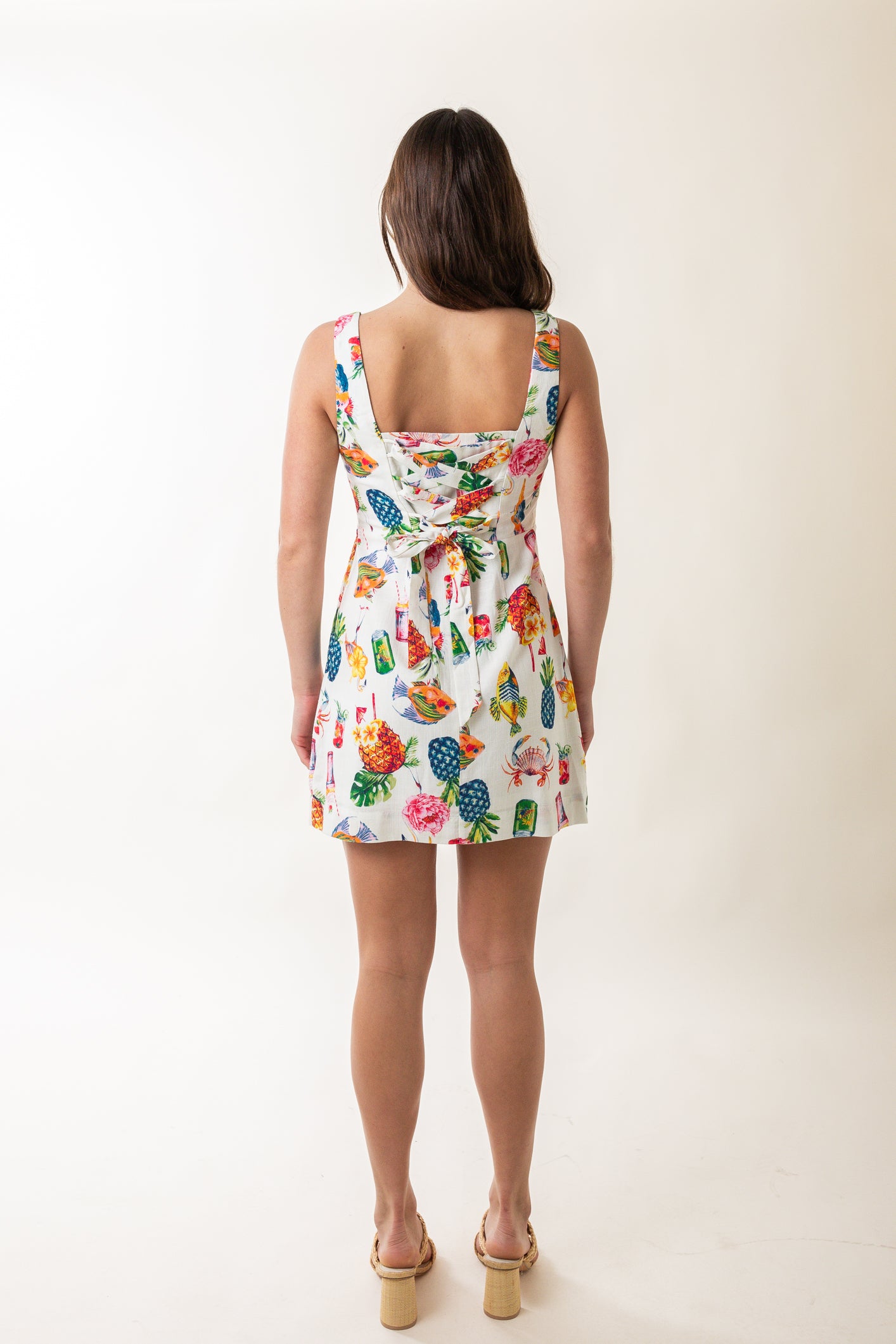 Square Neck Colorful Print Back Mini Dress