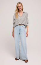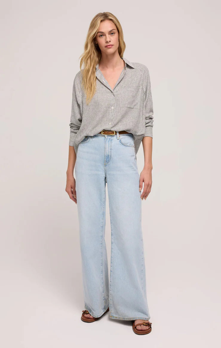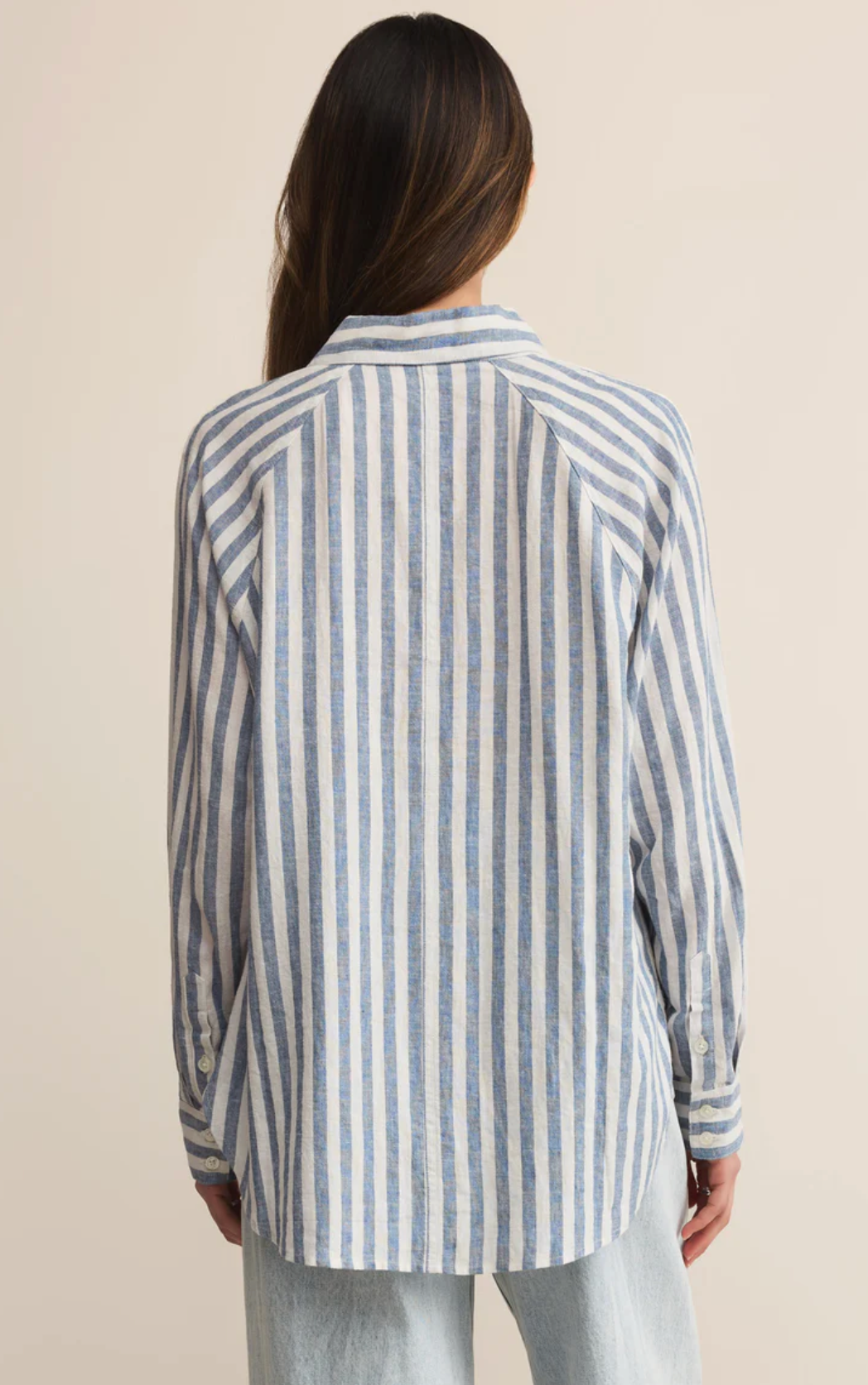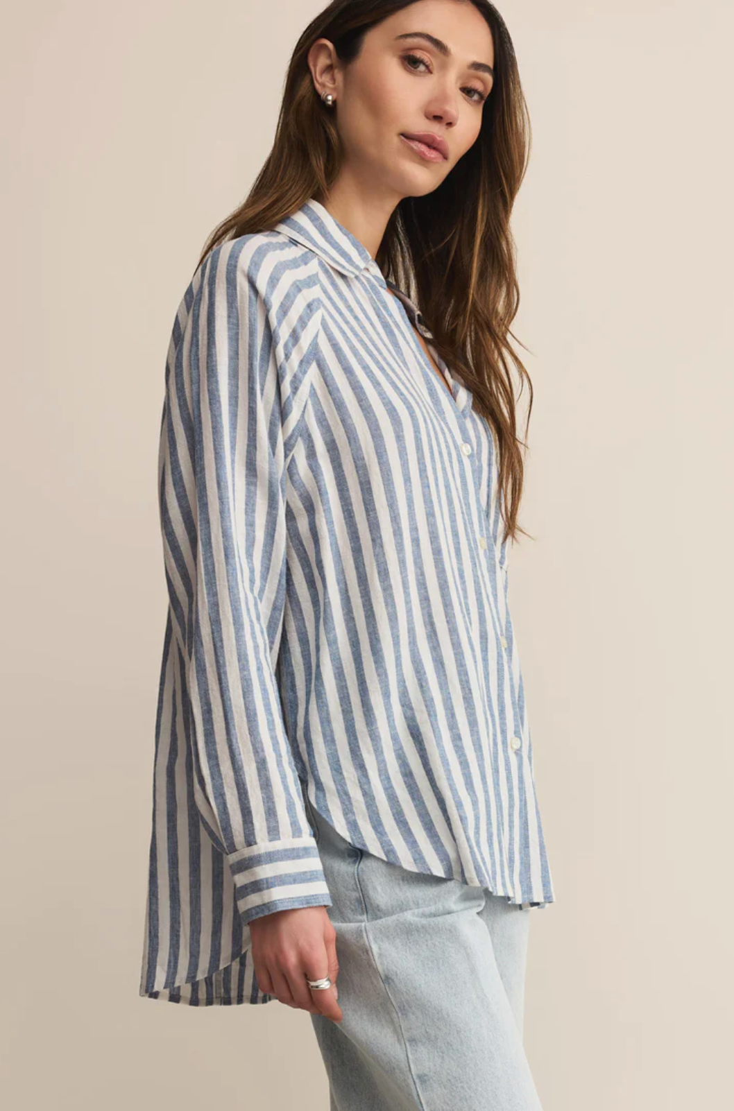 You'll love the easy, breezy comfort of this classic stripe button-up. Featuring that soft, drapey feel you look for, you can wear it alone or as a lightweight layer for an effortless look, no matter where your day takes you.