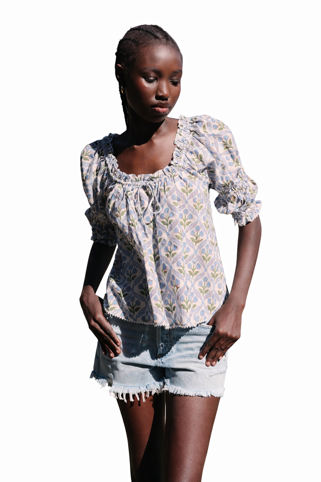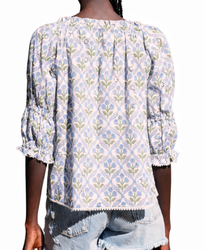 Featuring bubble sleeves that add a touch of whimsy, a ruffle neckline for extra dimension, and a sweet bow detail. The cheerful flower pattern brings a garden-fresh vibe to any outfit, making this top perfect for days when you want to feel a little extra fabulous. Dress it up or keep it casual; either way, you'll turn heads.