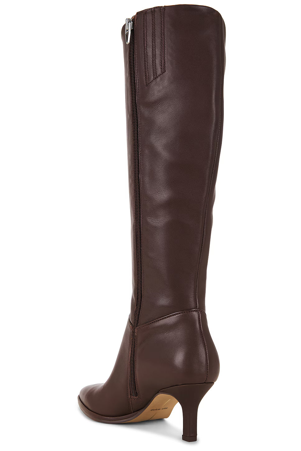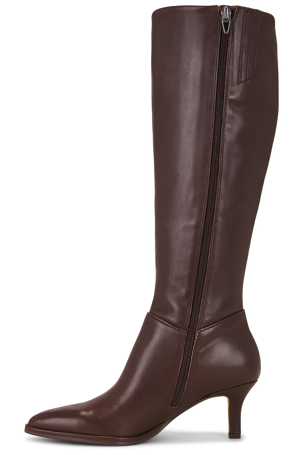 Add versatile sophistication to your cool weather looks with the Aldy boot from Dolce Vita. This knee high pair features a smooth leather upper with a just-right heel and pointed toe for added tailored appeal.