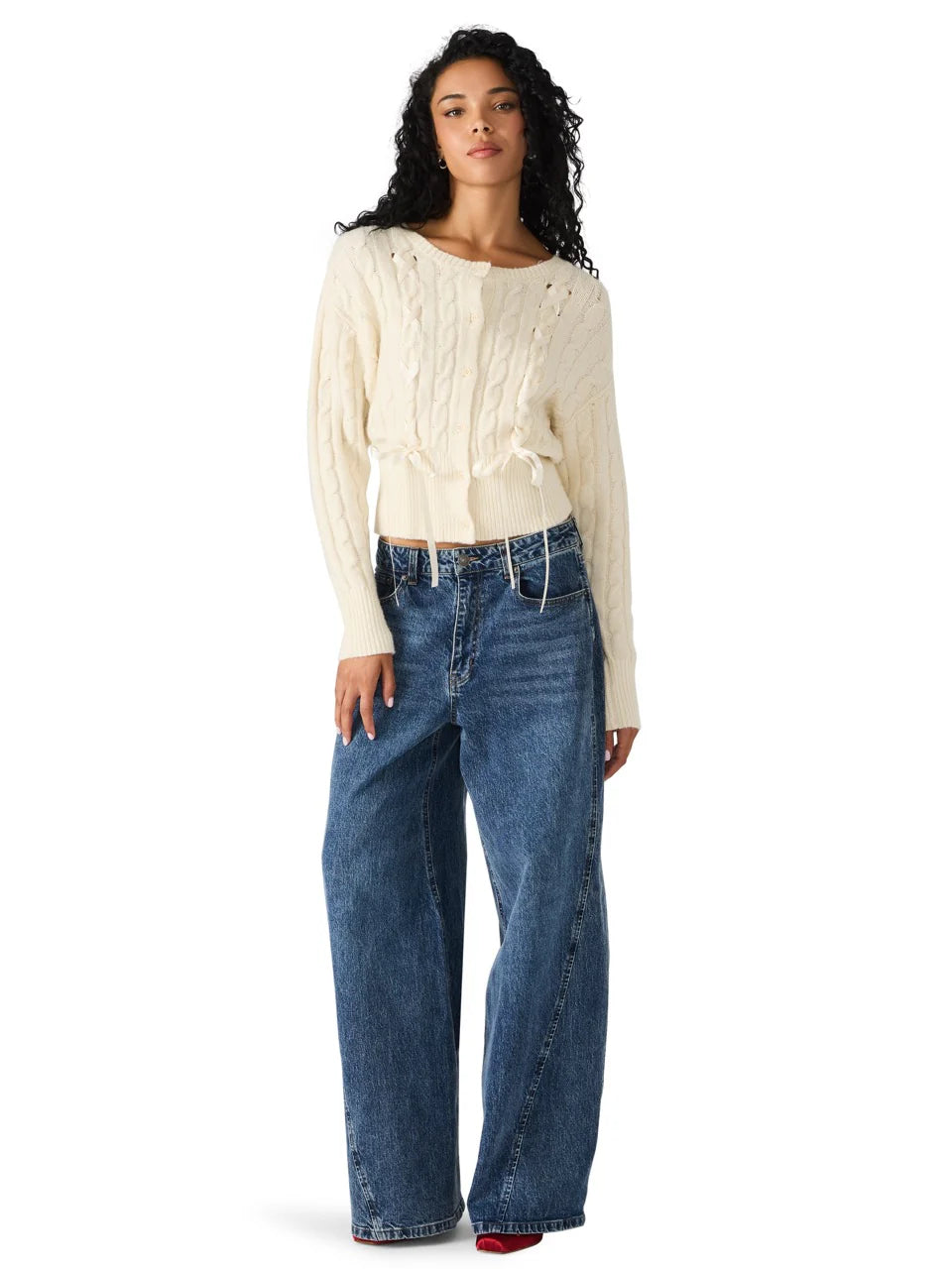As if a waist-skimming cabled cardi wasn't adorable enough, adding in ribbons really sweetens the deal.