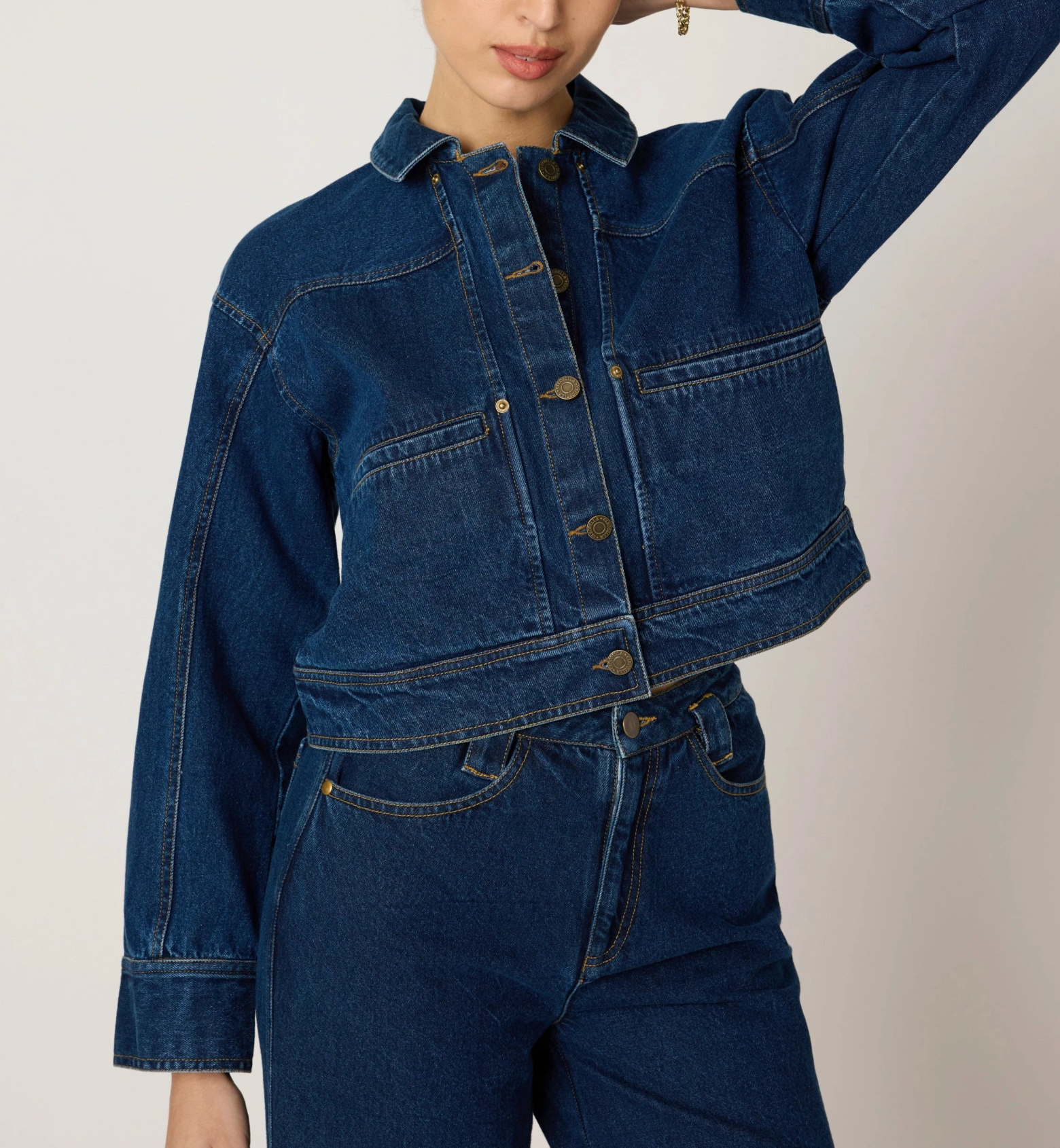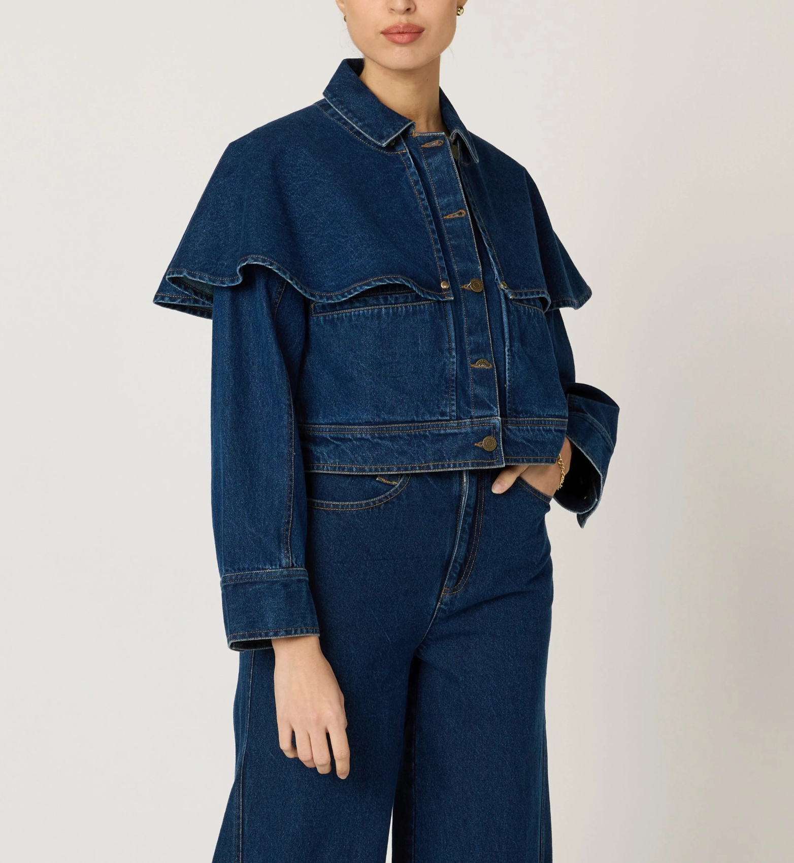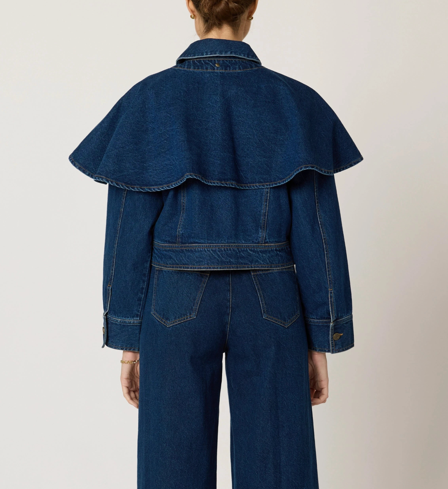 Crafted from 100% cotton, the Clarke Jacket is a versatile wardrobe staple with a unique twist. This long-sleeve, collared denim jacket features a button-down front, functional front pockets, and a removable cape detail that can be worn with or without—offering two looks in one. Effortlessly cool and endlessly layerable.