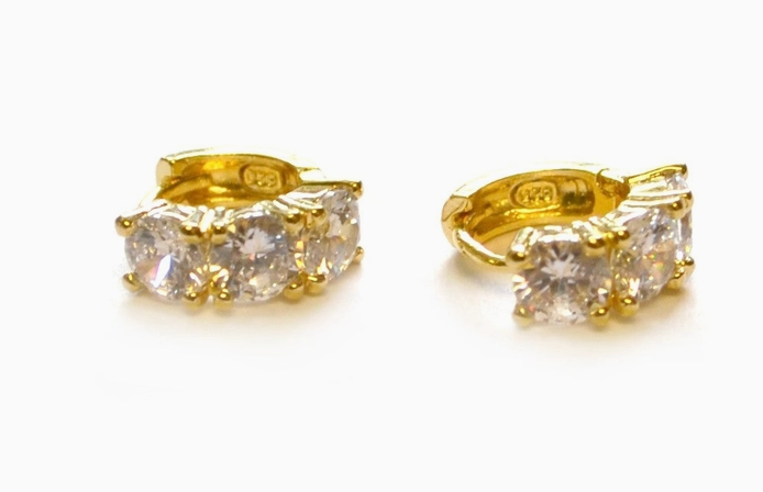 - Three crystal cubic zirconias on each earring