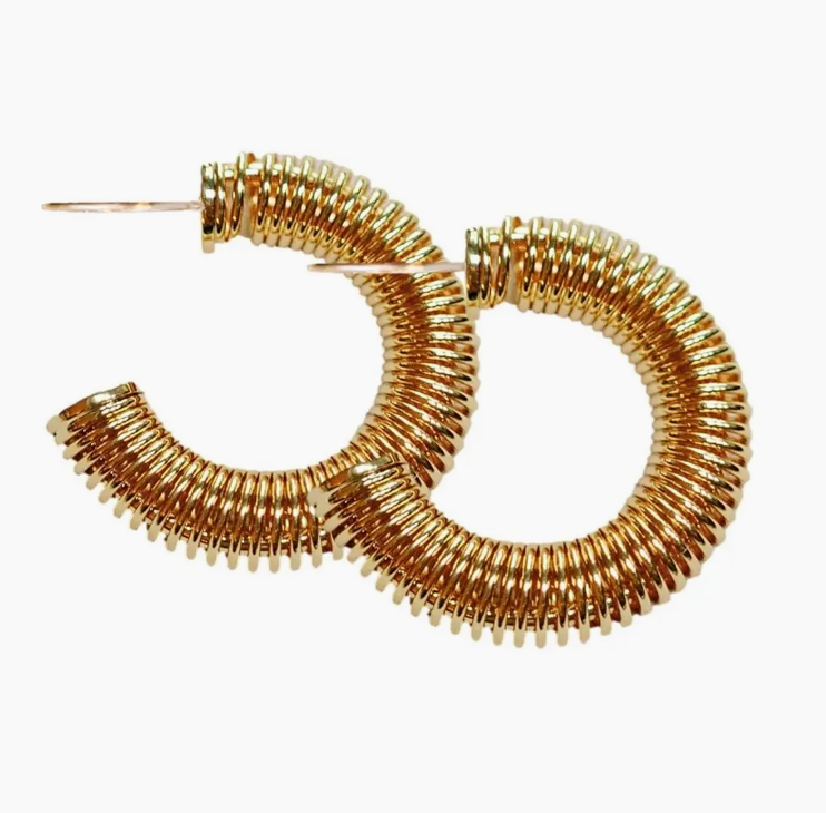 Gold tones are one of this year's biggest trends, and we are excited to add these to the collection! These gold coil hoops can be worn all day! They are perfect for summer, fall, and the holidays! These gold beauties pair well with just so many outfits!