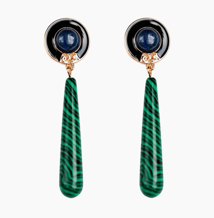 Lapis and Malachite Drop Earrings