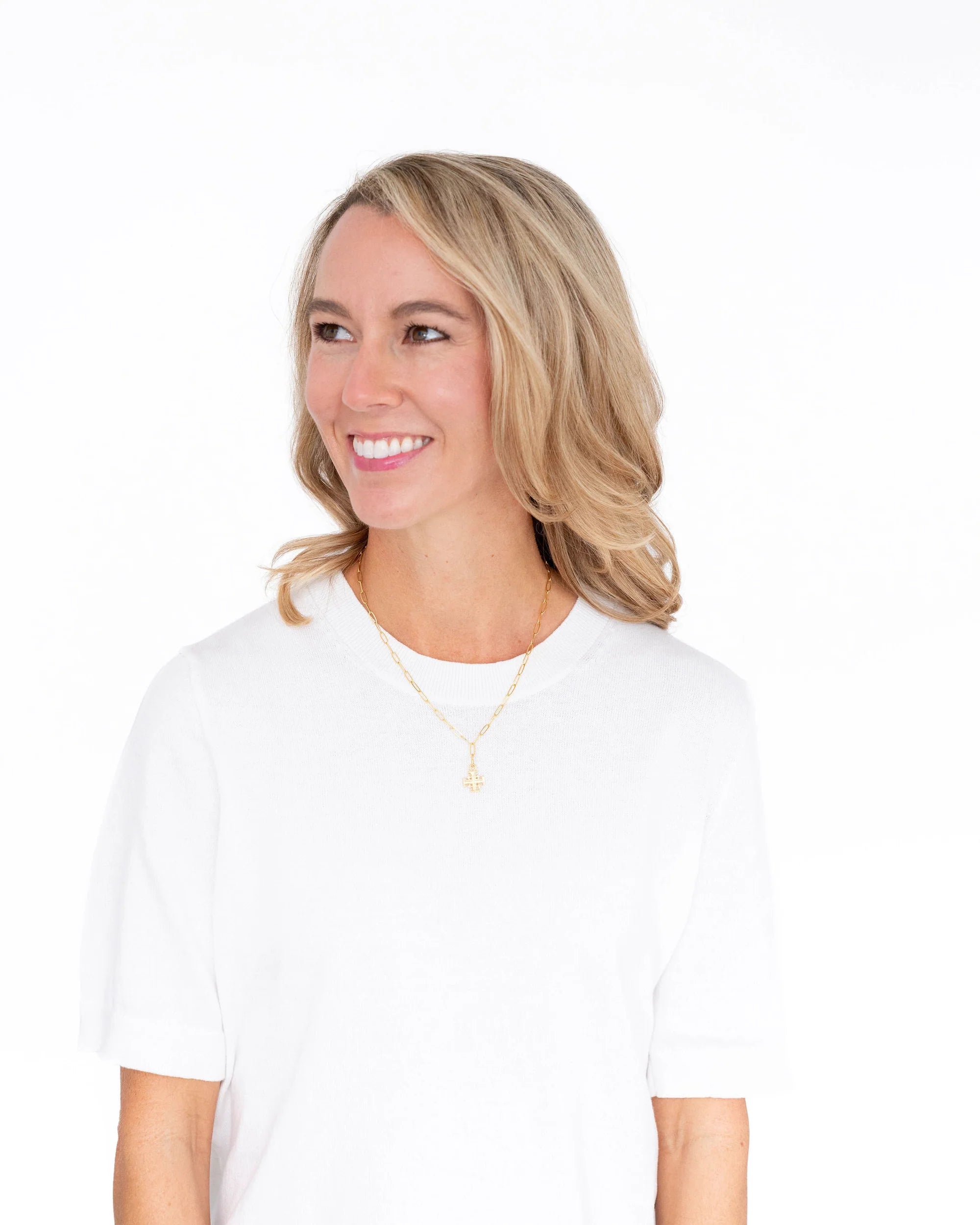 The Jerusalem Cross is an ancient Christian symbol that represents the 5 wounds of Christ, Christ and the 4 corners of the world, and Christ and the 4 evangelists, Matthew, Mark, Luke and John. We now offer you this meaningful charm on our small paperclip chain.