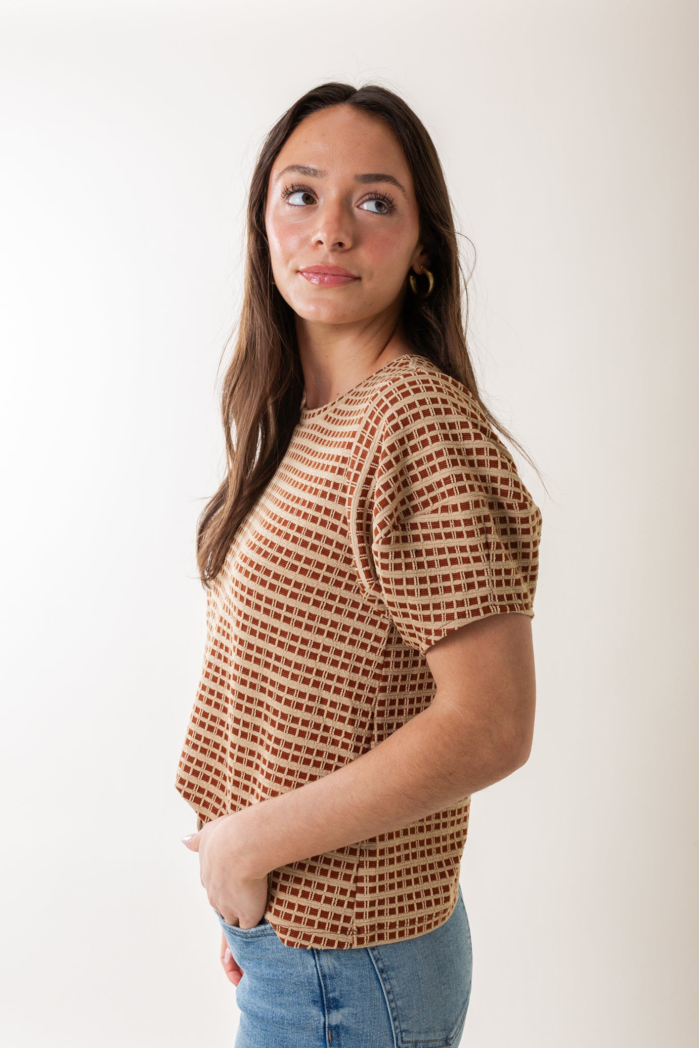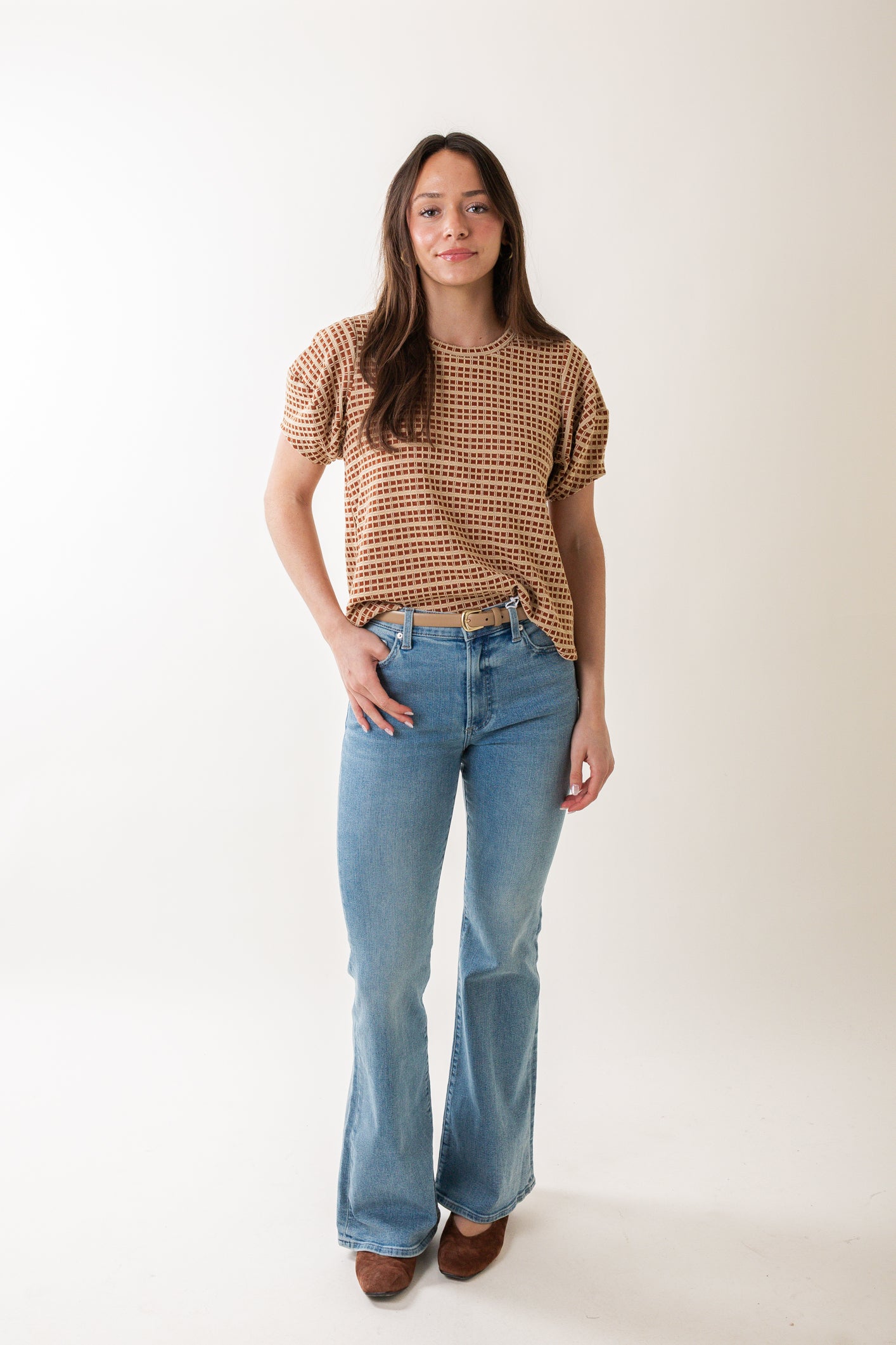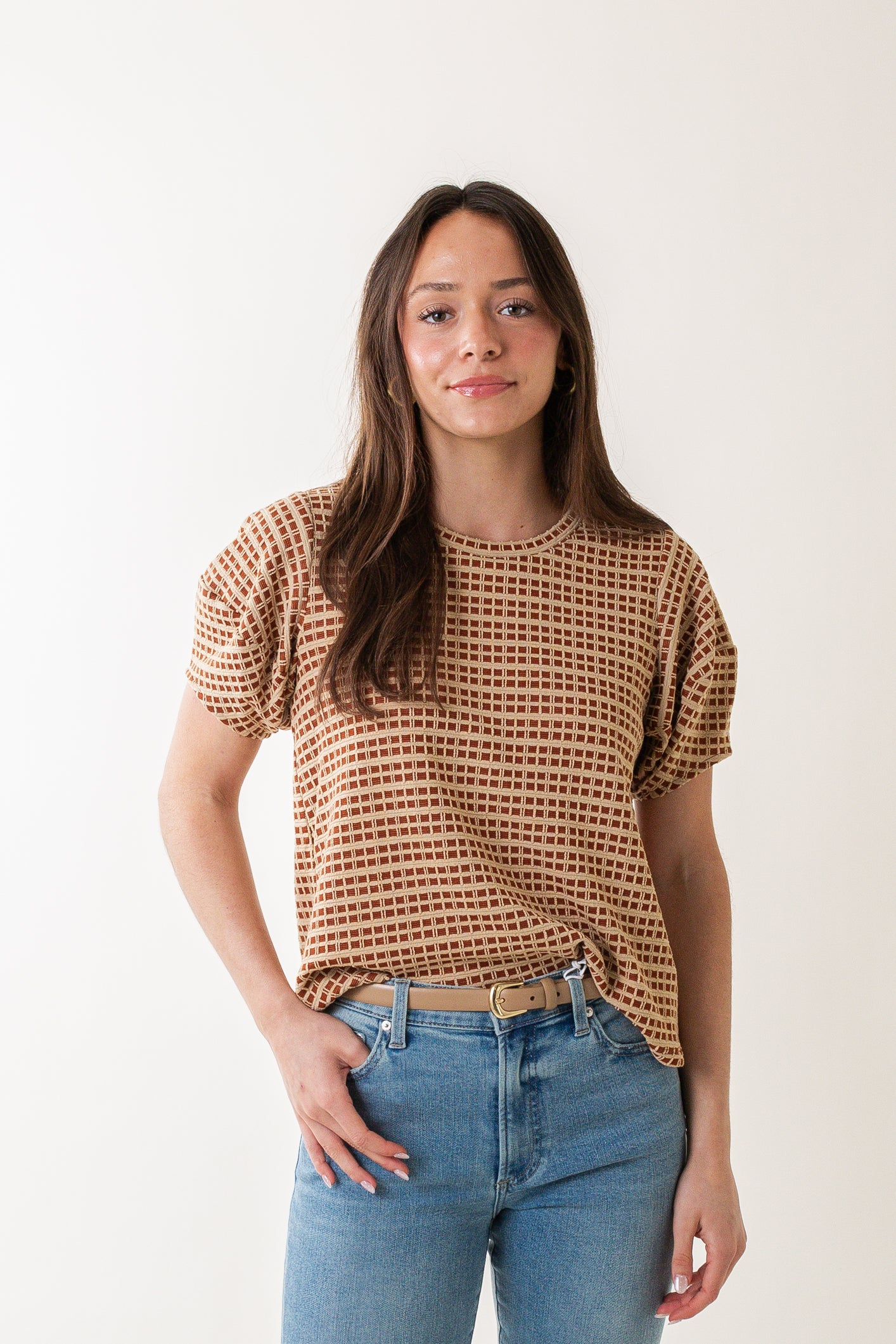 With its puff sleeve and relaxed fit, the Mojito Top is easy and versatile in equal measure. Cut in an artisan checkered jacquard fabric, this shirt is finished with abbreviated sleeves for a stylish, youthful look.