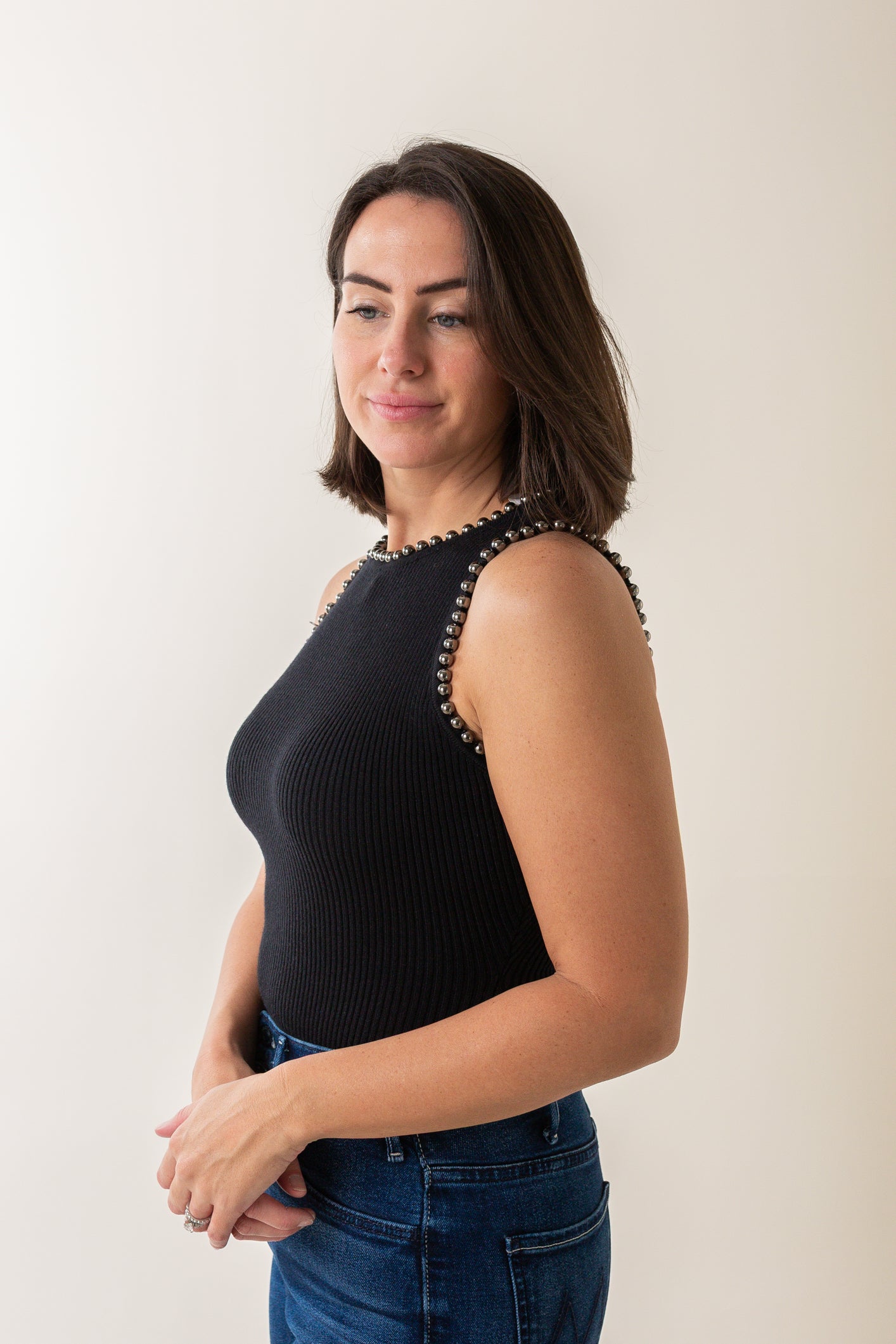 • Gunmetal beaded trim