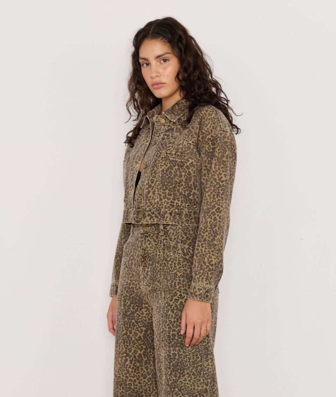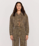 Bring a little wild into your wardrobe with the Anouk Crop Denim Jacket. Crafted from 100% cotton in a washed leopard print, this boxy silhouette features a cropped cut and brass-toned hardware for that cool, vintage feel.