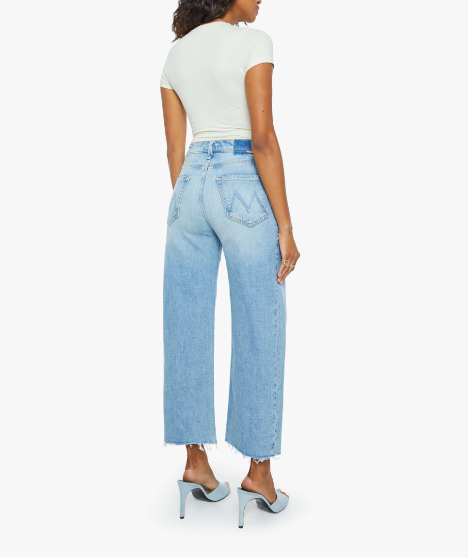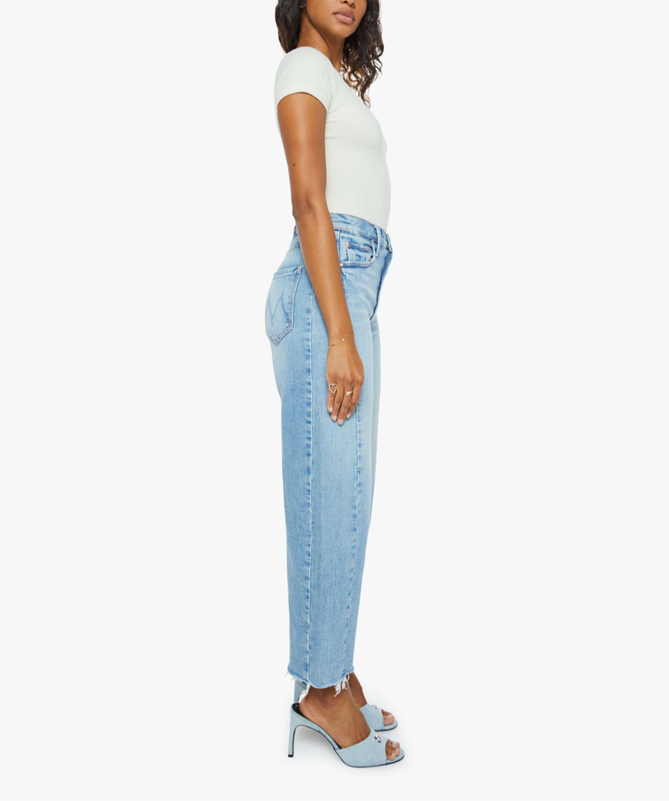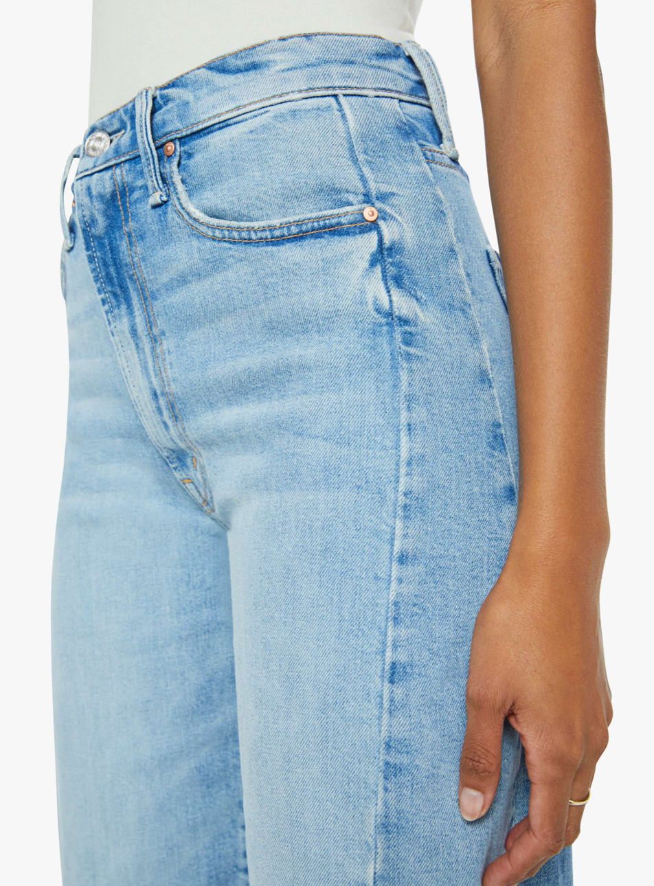 Truth's out. Super high-waisted jeans with a wide, curved leg, an ankle-length inseam and a frayed hem. Made from semi-rigid SUPERIOR denim, I Confess is a light blue with whiskering and fading at the knees.